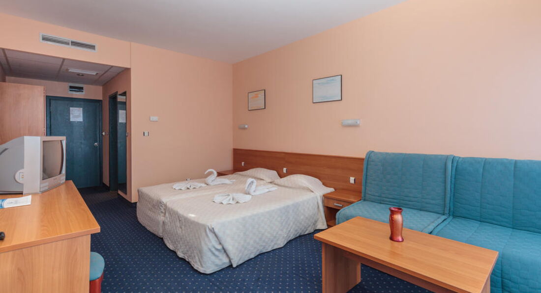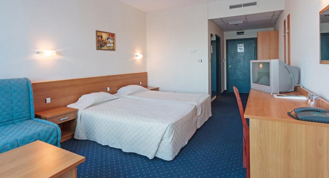 Типи номерів: Standard - двоспальне ліжко або два односпальні ліжка, одне або 2 крісла розсувних, макс. 2 дор. + 2 дит. або 3 дор., 28 м2У номері: