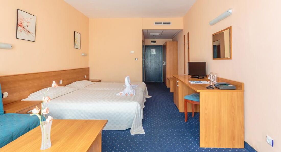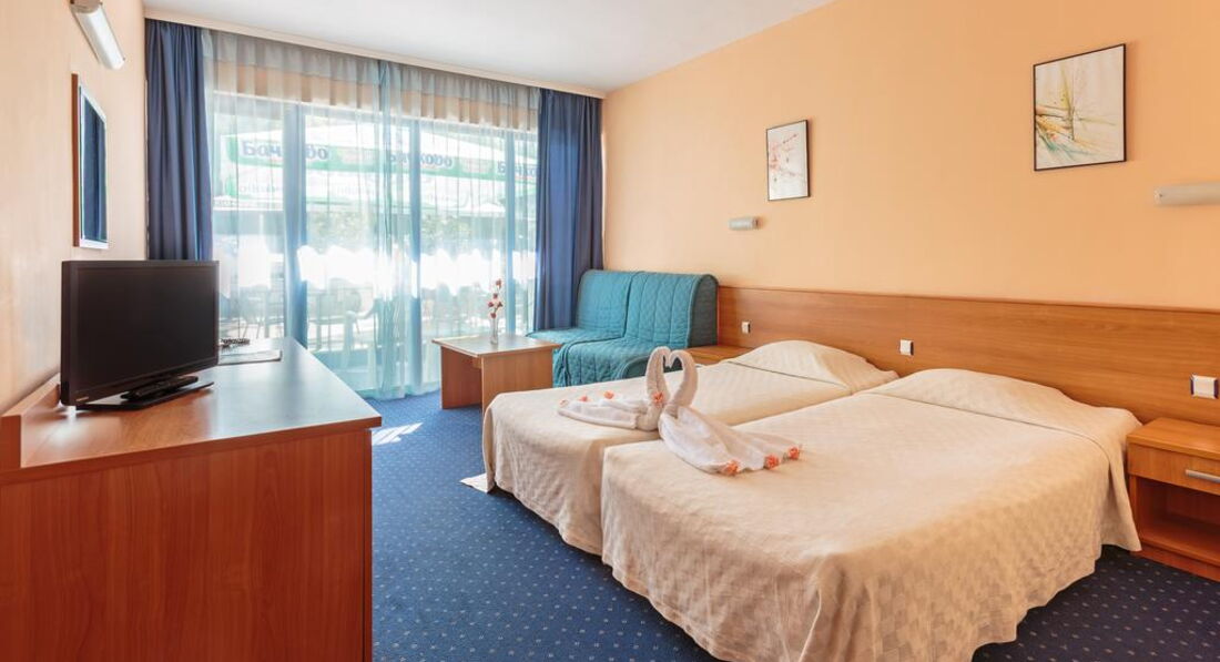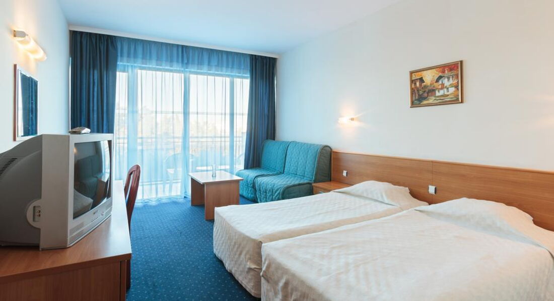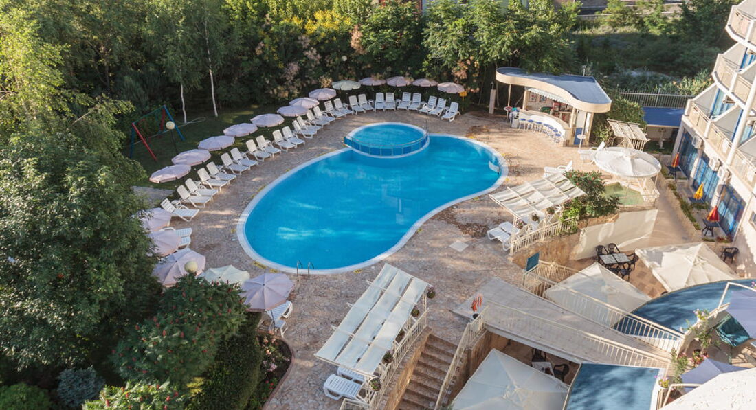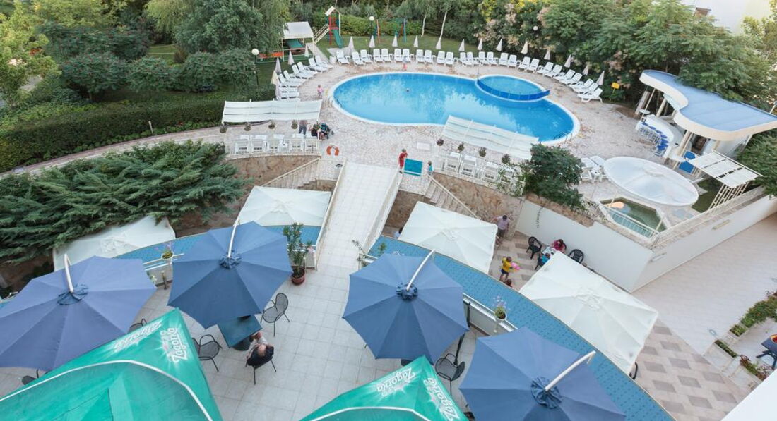 Розташування: в курортному комплексі Сонячний Берег, за 25 км від аеропорту міста Бургас, за 90 км від міста Варна, за 900 м від центру курорту і за 250 м від пляжу.