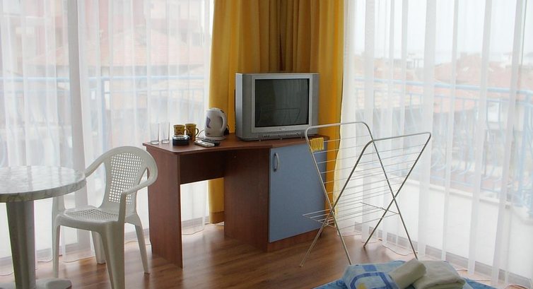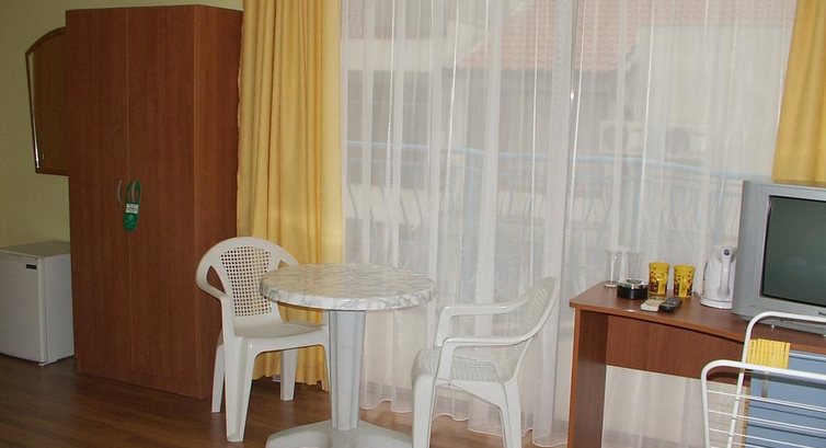 Отдыхали с мужем в августе 2011 года. Как для молодой пары без претензий, очень все неплохо было. Номер чистенький, постоянно убирали пока мы на море пляжились. Был балкончик с видом на главную развлекательную улицу Ропотамо. Отель без питания, что очень даже хорошо. Рядом с отелем есть супер маркет, где довольно дешево и вкусно можно купить их кулинарию. Возле отеля есть милая кафешка с недорогими ценами и вкусной едой, находится на ул. Тракия. Очень советую туда зайти, мы постоянно там обедали. Ужинали обычно возле пляжа в кафешке (название уже не помню, но там на входе чучела животных стояли). Там относительно мало народу, но очень вкусно готовили и по ценам тоже очень демократично. Вообще в Созополе да и во всей Болгарии цена на еду очень маленькая, порции очень большие и качество еды на высшем уровне!