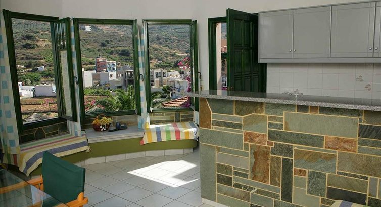 Розташування: за 300 м від центру курортного селища Агія Пелагія, за 20 км від міжнародного аеропорту «Нікос Казандзакіс» м. Іракліон.