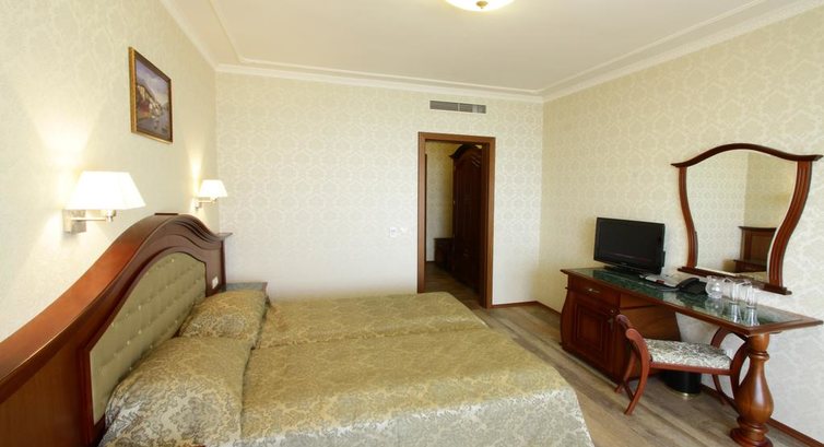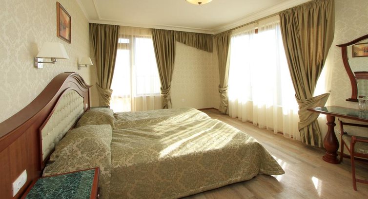 Отдыхали в июле 2012 с ребенком 3,5 лет. В отель приехали после 21:00, разместили сразу. Не успели разобрать чемоданы, как в номер принесли сэндвичи и воду (ничего особенного, но приятно). Отель находится в 30-40 минутах на автобусе от Варны и где-то в 15 минутах от Золотых песков.