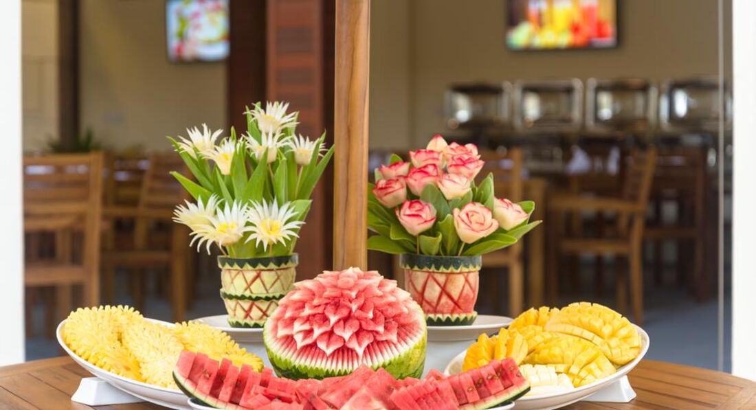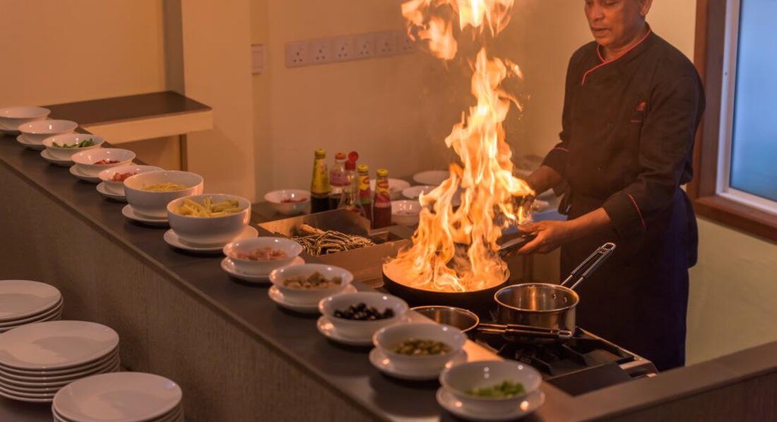 • AAROA RESTAURANT ресторан – головна обідня зона. Жива кулінарна станція з барбекю працюватиме під час їжі та в особливих випадках. Шеф-кухарі подають страви місцевої та міжнародної кухні, використовуючи найсвіжіші інгредієнти. Ресторан відкритий на сніданок, обід та вечерю