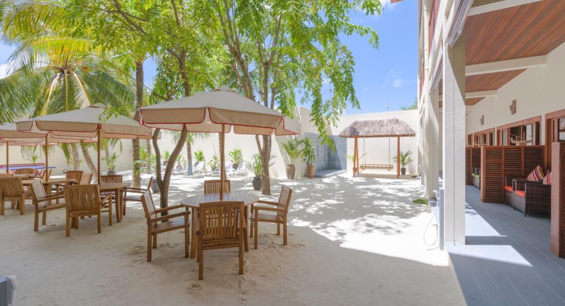• THEVELI VIEW CAFÉ кафе на даху – шикарне та сучасне. Насолоджуйтеся видом на океан за пізньою чашкою чаю або випийте каву. У кафе є телевізор із плоским екраном LED 100, на якому ви можете подивитися футбол та інші спеціальні заходи. Обслуговує легкі закуски та напої