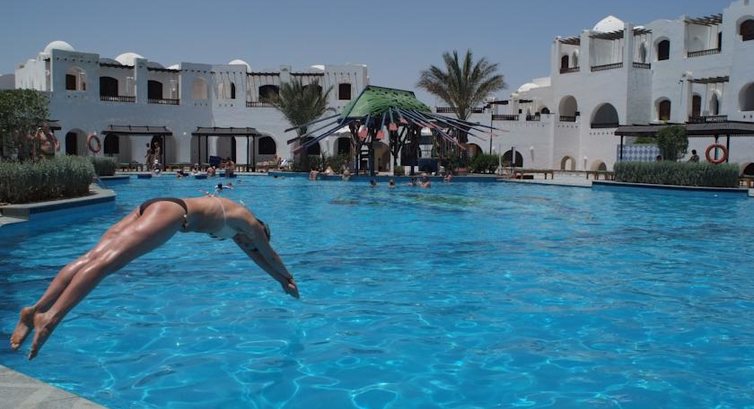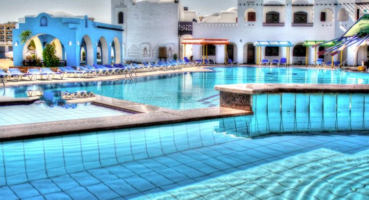Были в 2009 или 2010 г. в июне (забыл уже). Отель хороший, номера нормальные, но мебель старенькая, обшарпанная, но целая. Из номера было 2 выхода (один во внутренний двор отеля, второй на улицу между отелями). В отеле 2 пляжа, один мелкий с кораллами в виде лагуны (очень хорошо для детишек), второй глубокий сразу с берега с кораллами (очень красиво). Анимация есть, питание и бары без претензий. Вечером дискотека в дискозале "Калабуш" (в переводе Тюрьма) справа от входа в отель (мы там не были). У входа в отель на площади и по улице множество магазинчиков, лавочек, палаток с сувенирами и другими вещами. До центра Хургады на такси 5 минут (для сведения: правила дорожного движения отсутствуют, полицейские стоят как уличные арт-объекты). Такси сами не ловили. На улице стоят "специально обученные люди", говоришь куда надо и называешь свою цену (торгуешься), если всех все устраивает он машет рукой и подъезжает авто. Прогулка по центру интересная, но торговцы очень приставучие, могут схватить за руку и тащить в свой магазин. Брали экскурсию в пустыню к бедуинам на квадроциклах (если честно, не впечатлило) и морскую прогулку. Море шикарное. Отдыхом довольны.