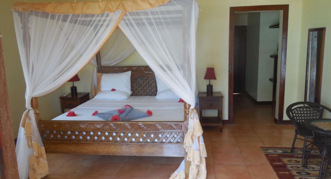 Кришталево чиста вода Багатий коралами та іншого морського життя, білі піщані береги, недосліджені узбережжя, що забезпечує ідеальний майданчик для водних видів спорту, кайтсерфінгу, плавання, дайвінг, підводне плавання, риболовля та багато інших. Arabian Nights Suites знаходиться приблизно за 45 хвилин їзди від Кам'яного міста і за годину їзди від міжнародного аеропорту Занзібара. Готель пропонує унікальне та відокремлене місце для всіх любителів моря та природи, з відмінним співвідношенням ціни та якості.
