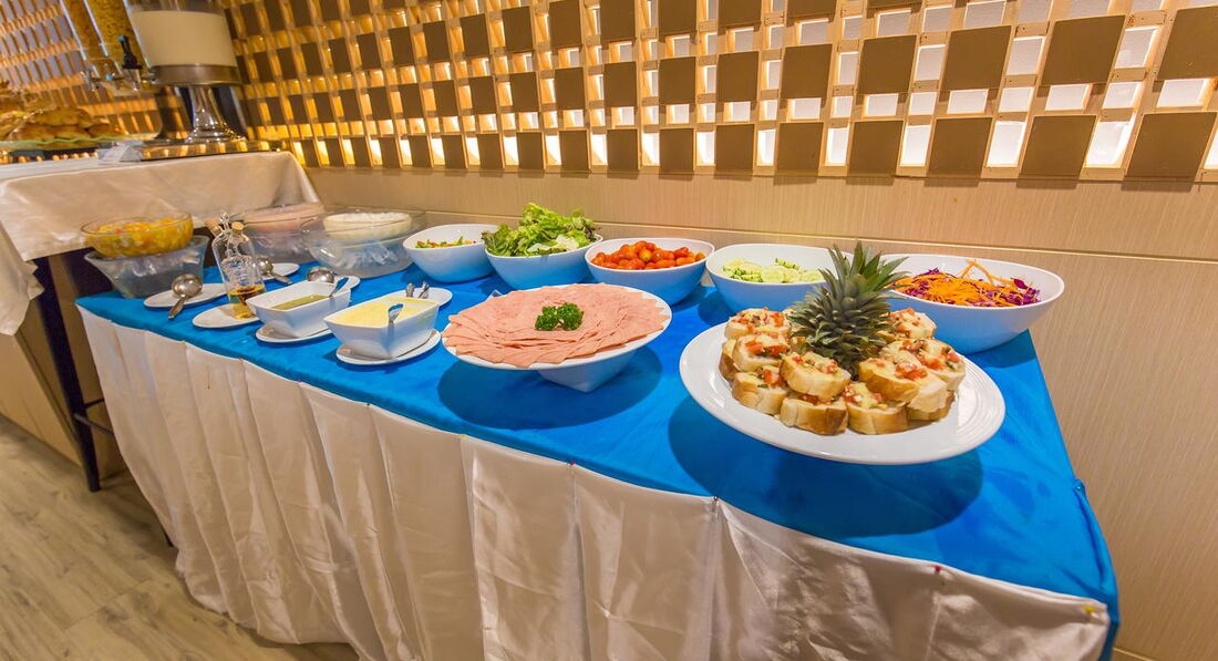 Територія та послуги: • басейн (5 х 11м, 09:00-20:00) • ресторан • бар • 2 ліфти • Wi-Fi у лобі (безкоштовно) • інтернет-куточок (безкоштовно) • пральня Розваги та спорт: • масаж Для дітей: • басейн (5 х 2м, 09:00-20:00) • дитяче ліжечко • стільці в ресторані • няня (платно) Живлення: • RO (без живлення) • BB (тільки сніданки) • HB (сніданки та вечері) • FB (сніданки, обіди та вечері) Сніданок шведський стіл; обід та вечеря – за фіксованим меню) Пляж: Громадський піщаний пляж через дорогу від готелю. Пляжні рушники безкоштовно.
