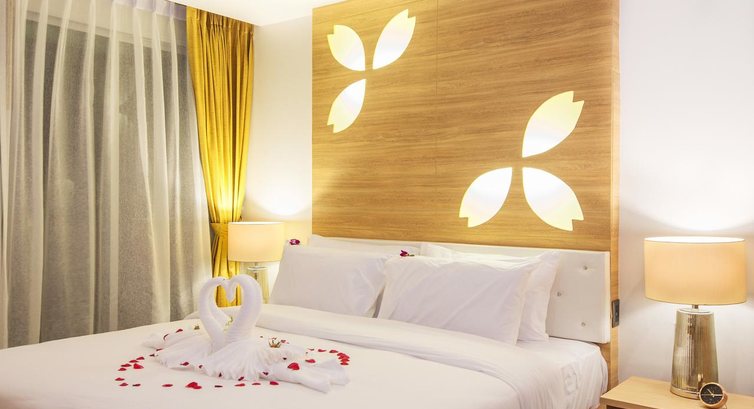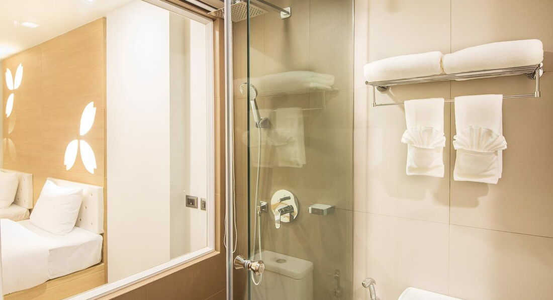 Типи номерів: • 15 superior (21 кв.м, макс.2+1 чол., вид на сусідні будівлі; 2-4 поверхи) • 69 deluxe (25 кв.м, макс.2+1 чол., вид на сусідні будівлі; 2-4 поверхи) • 3 family suite (41 кв.м, макс.2+1 чол., окремі спальня з двоспальним ліжком та вітальня з софою, вид на сусідні будівлі; 2 та 5 поверхи) • 3 grand suite (45 кв.м, макс.2+2 чол., окремі спальня з двоспальним ліжком та вітальня з софою, вид на дорогу та море; 2 та 5 поверхи)У номері: • кондиціонер • ТБ (є російський канал) • DVD-програвач (suites) • телефон • Wi-Fi (безкоштовно) • сейф • стіл, стілець (крім superior) • софа (suites) • міні-бар • 2 бут.води щодня безкоштовно • набір для приготування чаю/кави • душ (з туалетним приладдям) • фен • балкон (крім superior)