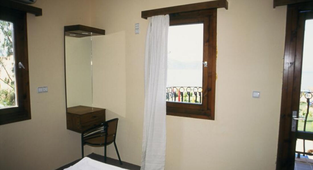 Старый, обшарпанный отель, невнимательный персонал. Кормили невкусно, переваренные яйца на завтрак, соевая колбаса, на ужин - остатки завтрака и два кусочка вываренного мяса с макаронами. Своего пляжа у отеля НЕТ, территория - грязный бассейн и бар, лежаки на море - платные. Море спокойное только до 11, потом начинает штормить. Лежишь на ветре, удовольствия мало, а за лежак и зонт уже заплатили!