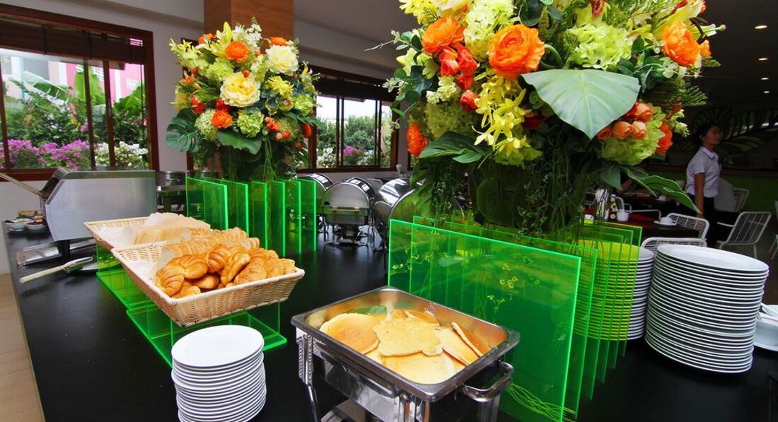 Еда в отеле. Сколько были в Тайланде хуже не встречали. Люди хвалили, я не привереда в еде, но есть большинство блюд не возможно было, не смотря на то, что тай еду я люблю и острое тоже обожаю. Мы дней 5 просто даже не ходили в столовую. 2 корпуса едят в Ареке-столовой, а Эвергрин в своей столовой, еда одна и та же. Описываю, что в течении всех 22 дней было и даже не менялось местами))). Мультиварка с отварным рисом (склеенным), стекленная лапша острая с овощами( типо капусты)или яйцом, далее очень острый мясной фарш ( что молоком было не сбить пожар во рту на сколько несъедобно-остро), овощи пареные пресные (морковка, брокколи), жидкий соус с ананасом и картошкой, чуть курицы или рыбы на кокосовом молоке и оч.острое (в общем жижа с оч.крупными кусками овощей), тушеный или запечены целый помидор пресный, пресные местные грибы с луком, жидкая тушеная фасоль в томате, печеная картошка типо по -русски, бекон, сосиски, 2 супа (один пустой бульон мисо-суп, куда сам кидаешь водоросли и лук, а второй суп ежедневно рисовый густой с несколькими фрикадельками), хлопья с молоком или йогуртом, круасанчики, джемы, масло, хлеб (тостер есть), 3 вида сока типо Юппи (напиток специфический), молоко и фрукты (арбуз, ананас, папайя, мандаринки), кофе, чай, жарят омлет. Вот из всего этого многообразия съедобным и вкусным были-рис, фасоль, сосиски с беконом, омлет, круасаны ну и фрукты. Остальное не возможно было есть! Соответственно это просто надоело. Подносят убывающую еду не регулярно, горелки часто потухшие и еда остывшая поэтому. Кофе типо Нескафе растворимого, чай пикетированный. Предлагали редко официанты, порой муж сам ходил наливал себе, хотя народу мало завтракало. Хуже питания я за множество поездок не встречала. Хочу рассказать позорный случай с завтраком, чего ни в одном др.отеле не было! Завтраки начинаются с 7-30 до 10, хотя на их сайте до 11-30 было указано... Ну да ладно. Так вот. У нас была ранняя экскурсия на остров Саммет в 7:40ч. Мы за день в обед подошли в столовую к администратору и спросили про ланч бокс, либо пораньше покушать, если будет что. Нам админ ответила, что без проблем и в 15-20 мин.восьмого часа все уже будет в лотках, придти нам и что ланч бокс не нужен, т.к.успеваем поесть полноценности. Мы с мужем встали пораньше и в 7:20 ч.пришли в столовую первыми, действительно в лотках уже все стояло и официанты стояли... Мы сели за стол с рюкзачками и к нам 2 официантки аж подлетели и начали выгонять и не просто гнать, а в грубой форме, тыча в часы, что открываются они в 7:30, и еще типо рано. Я достала ваучер со временем ранним на экскурсию и что мы вчера обсудили этот вопрос с админом столовой, а нас ни в какую даже выталкивать начали. Я сказала, что подожду за столиком. Мы в таком недоумении были. Я хуже позорного отношения персонала не встречала. Так официантка не успокоилась и побежала на ресепшен за дежурным. Он так же прибежал с криками и нас практически,ругаясь на английском, вытолкнул со столовой. Мы даже от такого сервиса есть перехотели. И ничего не купили с собой в дорогу. Сели ждать трансфер. Официантки все обсуждали нас ходили. Потом дежурный к нам подошел с листком, где было написано яйцо и хлеб))). Мы отказались и уже послали его. В итоге после этих разборок наступило 7:30 и они нас пригласили в зал столовой с улыбками как ни в чем не бывало.... Желания кушать не было вообще. Выпили ч