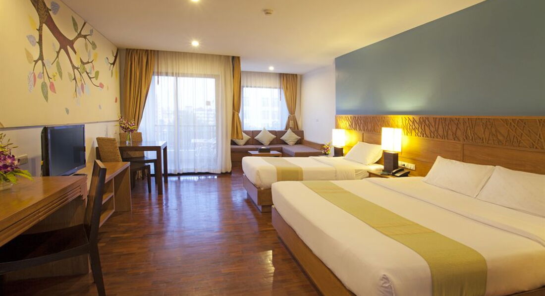 Были в Тае не первый раз. Отели выбирали в Центре всегда. Расположение этого отеля нас устроило полностью. До тук-тука не далеко, кафешки рядом, магазины тоже. В отели заселили быстро, даже не ждали. Номер приятный, чистый. Обслуживание хорошее. Два бассейна чистые. В отели кафе хорошее, ценник не высокий и готовят вкусно. Завтраки почти не ели, скудные, ориентированы на европейцев, выбор маленький, поэтому ели под заказ. Отель рекомендуем.