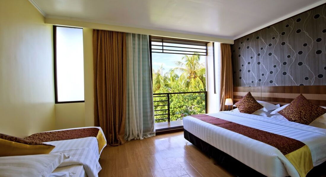 Были с мужем в этом отеле пару ночей, отель маленький, номера не большие уютные, не хорошая звукоизоляция, радует,что находится прям на пляже и можно плавать и сноркать, рядом с отелем два крупных оператора экскурсионных, это VENTURO и ICOM, у которых можно купить экскурсии на резорты или разные рыбалки и т.д. У нас был номер с видом на город,но это мягко сказано город, в окно мы видели крышу и стройку при чем не одну) В общем нормальный отель,за не большие деньги.