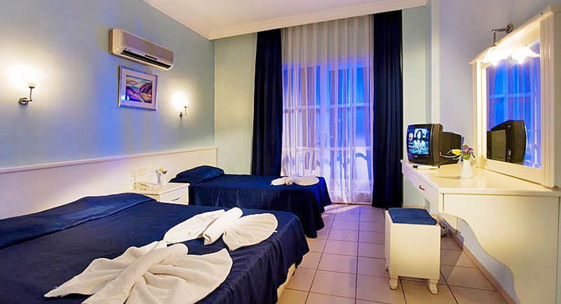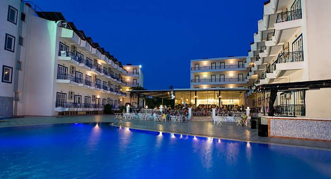 "Отдыхала" с ребенком 3 лет. Начиталась положительных отзывов и решила, что в Турции можно бюджетно отдохнуть. Жестоко ошиблась. Номера: аскетичные, относительно чистые, НО: про чистку и дезинфекцию кондиционера хозяева не знают или не помнят. Малыш входил в номер и зажимал нос: пахло пылью и плесенью. Оконные рамы деревянные, видимо, пластиковые стеклопакеты слишком дороги для этого отеля, соответственно, звукоизоляции нет. Спали в берушах. Иначе невозможно по ночам: из отеля через дорогу неслись крики павлинов в период гона и шум автомобилей, из-за хлипкой входной дверки до часу ночи во всю мощь звуки позабытых песен российской эстрады 90-х... Без содрогания не могу вспоминать пьяный глас любителей караоке:"Буууууухгалтер, милый мой бухгалтер..." . Нда, подборка соответствовала интеллектуальному уровню основного контингента отдыхающих в этом отеле. А какой лифт!! Пятна разного рода грязи на створках, полу.... Для справедливости: бассейн чистый, в столовке тоже неплохо. Пляж: 10 мин. по неухоженной муниципальной территории, не без помойки))) лежаки впритык, на всех не хватает, и матрасы просто песня!!! Старые, вонючие, грязнущие!!! Море приятное, но было прохладным. Питание: малоежкам-вегетарианцам подойдет. Помидоры, огурцы, зелень на пятерку)) каша варились на порошковом молоке и была несъедобной из-за лошадиной дозы сахара. Мяса и вправду не было. 3 раза на ужин была курица и костлявая невкусная рыба. Видели бы Вы очереди за этой курицей))) больше 2 кусочков в одни руки не повар не отпускал))). Анимация: умеренно активная, дневная и вечерняя для малышей замечательная! Но ночная для взрослых... Брррр..
