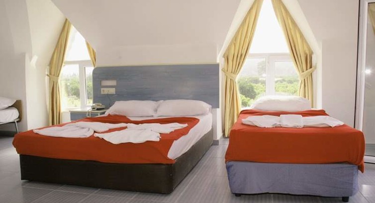 Поселили 2 взр и 1 пятилетнего ребенка в маленький номер с 2мя кроватями. Краны еле работами. Освещение - 1 лампа на весь номер. За 7 дней ни разу не убирались, белье не меняли. Переселили на след день в другой номер,чуть побольше. На завтрак: кто успел - тот и сЬел. К 9.30 не достанется даже яйца: огурчик, хлебушек и кусочек брынзы. На ужин - огромная очередь, хоть в соседнее кафе иди. Официанты - турки- убирают быстро. Да и с посудой напряг: суп - есть, тарелок-нет. Пляжных полотенец нет. Собственного пляжа с лежаками тоже. Алкоголь - для особо почетных. Неограниченного вина, пива, раки и пр. - даже не думайте. А что вы хотели за такие деньги??? Хозяин - пожилой турок, на ресепшн - мальчики из средней Азии. Каждый день разборки из-за номера, еды или еще чего-нибудь)))В отеле - одни русские и немножко турков. Бассейны, однако, не плохи, но плавание в нем ограничено до 20.00, горок нет. . Вай-фай - платный, пароль за деньги на ресепшн. До моря минут 10-12, лежаки платные, везде гоняют, если у тебя нет браслета припляжного отеля. Ездит маршрутка до дальнего пляжа (пешком минут 25-30), вход на пляж - 1$ ,билетик действует на целый день. Рядом 2 крупных супермаркета: Мигрос и Карефур, там можно купить еду и алкоголь, бытовую химию. Тем, кто привык отдыхать на действительно - все включено с хорошим сервисом - не советую. Непритязательным туристам, кому пофиг, что, где, когда - рекомендую.