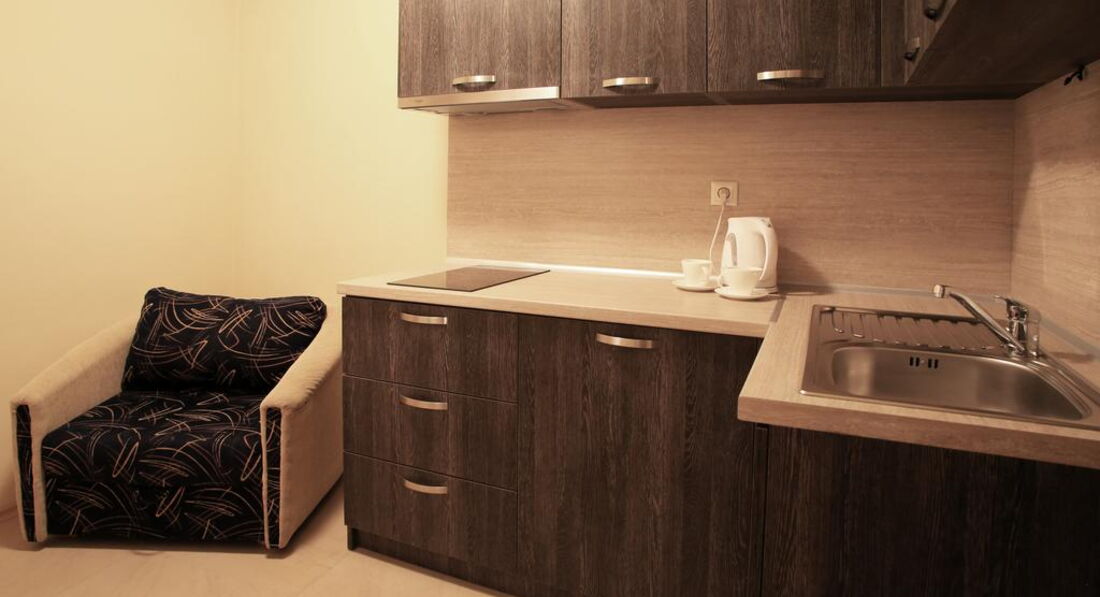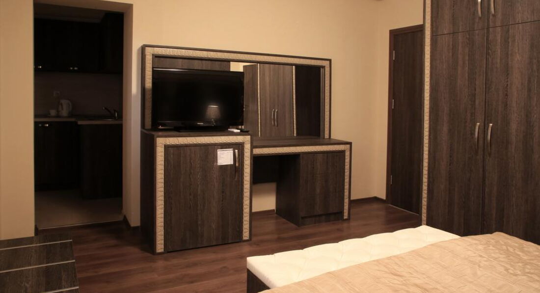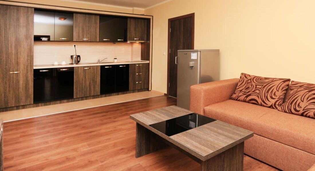 30 Apartment 2 – макс. розміщення 3ad+1ch, 4ad двокімнатний номер (вітальня та спальня з суміжними дверима), у вітальні є кухонний блок (холодильник, електроплита, електрочайник, мийка) та м'який куточок. У спальні – king size bed