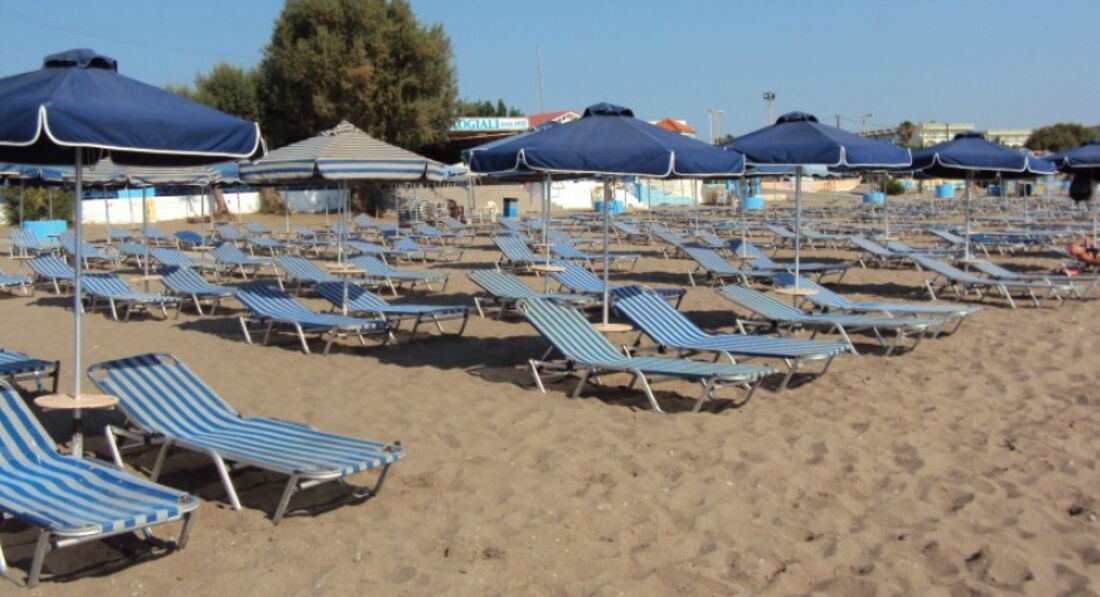 на пляжі парасольки, шезлонги: платно
