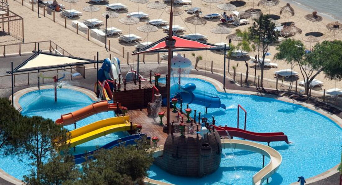 Пляж: море песчаное, чистое, лежанок достаточно, но если вы идете на море после 15.30, то вряд ли получите полотенца! На вопрос почему их нет, внятного ответа мы не получили. Аквапарк для детей неплохой, но горки отключают в 17.00. Отель совсем не 5 и даже не 4 звезды.