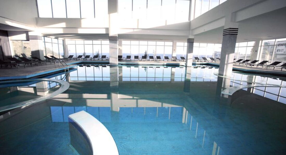 Крытый бассейн со всей внутренней инфраструктурой, хлористой духотой и запахами - отдельная песТня. Сходите, если совсем будет уж делать нечего. Разве что тренажеры можно посетить.