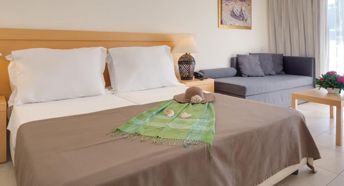 superior suite side sea view (з боковим видом на море, осн. ліжко – двоспальне (2 односпальні за запитом), доп.- диван-ліжко, спальня з вітальнею, макс. 4 чол., 32 м2).