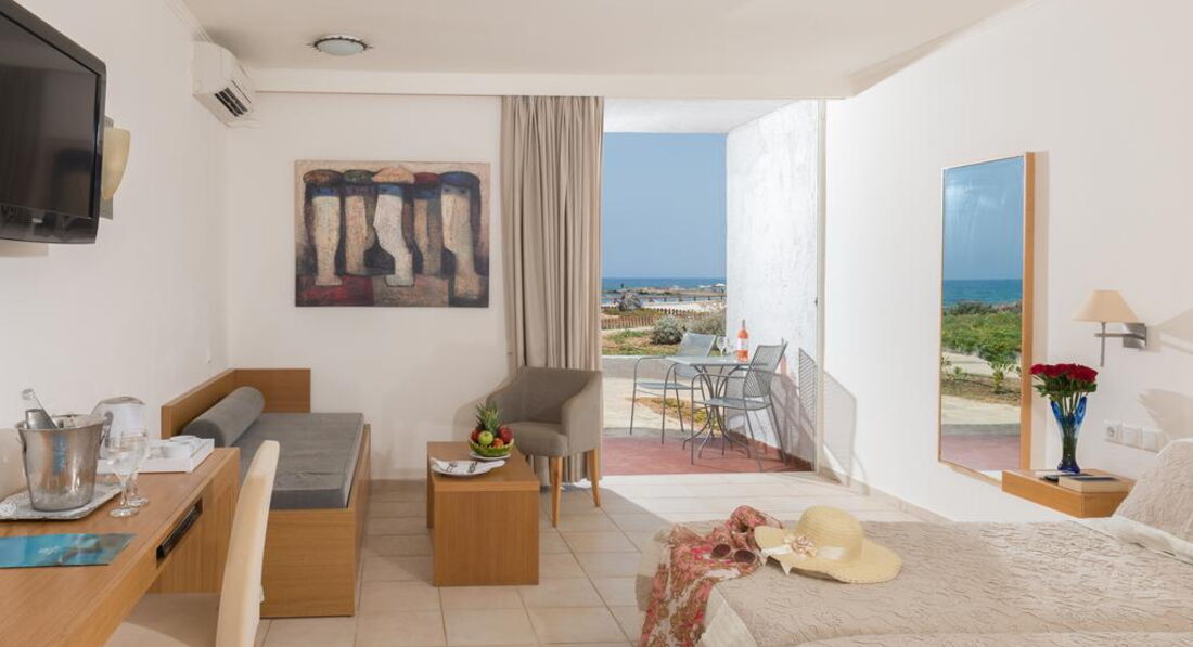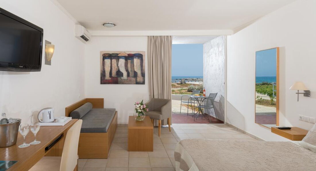 Розташування: за 10 км від аеропорту м. Іракліон, за 24 км від м. Херсоніссос, перша берегова лінія.