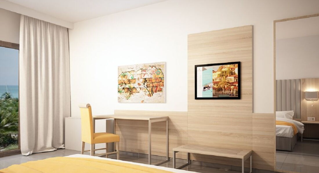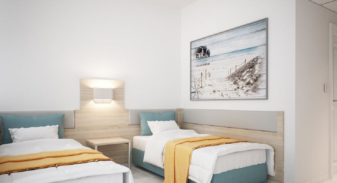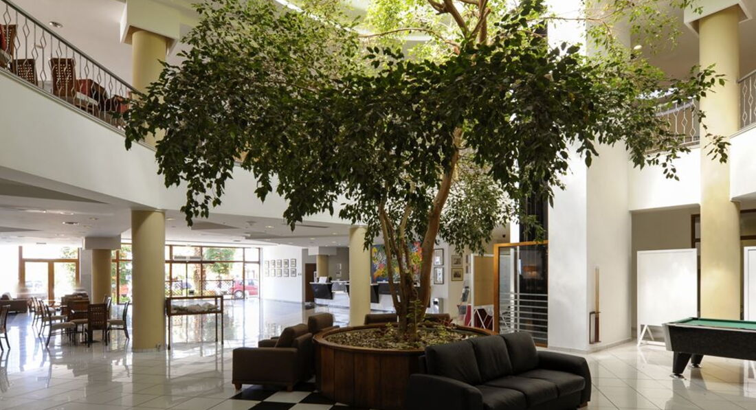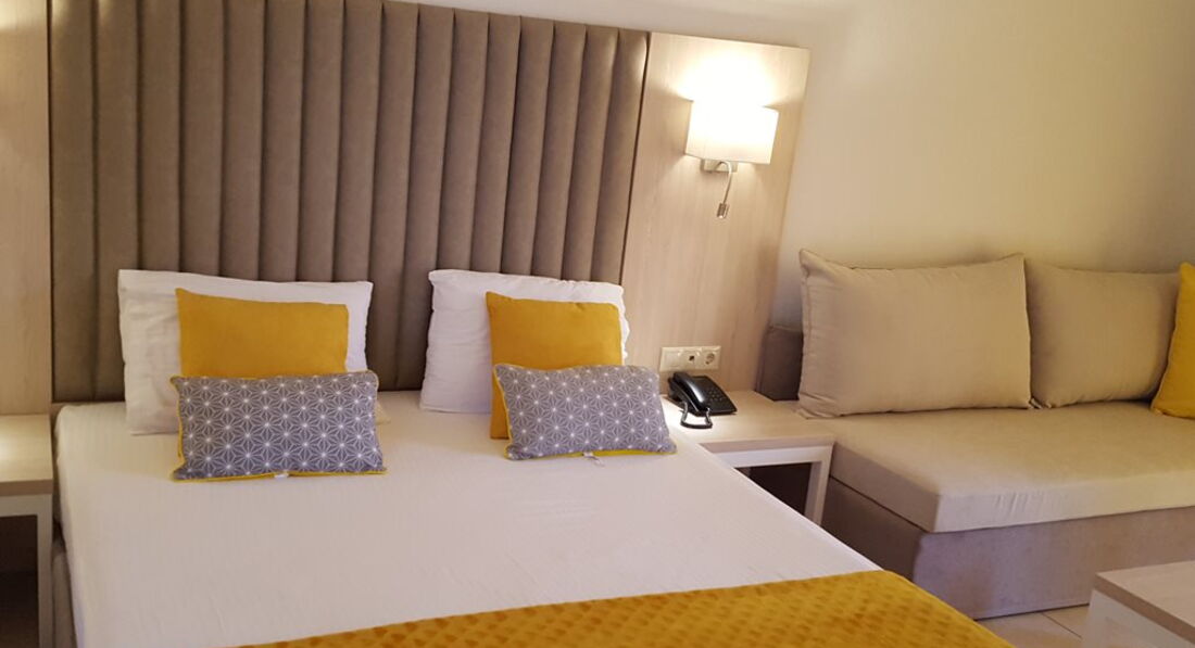Реновація 2017-2018! Всі номери (ванна кімната, меблі), головний ресторан з новою відкритою терасою (200 кв.м), нова концепція шведського столу, новий відкритий релаксаційний басейн, оновлений бар біля басейну і бар на пляжі. Всього 250 номерів: Double Rooms SV/GV (~16 кв.м), Doubles 3 pax SV (~16 кв.м), Superior Rooms (~30-35 кв.м), Superior Rooms 4 pax (~30-35 кв.м), Family 2 Rooms (~40-45 кв.м), Maisonettes (~40-45 кв.м). Типи номерів: Double GV Номери розташовані у верхній частині готелю (прохід до сходів), стандартні умови проживання. Двоспальне ліжко або 2 односпальні. Double Room SV Стандартні номери розташовані на височині, прохід до номерів сходами. Двоспальне ліжко або 2 односпальні. Вид на море. Double Rooms 3 pax Двоспальне ліжко або 2 односпальні. Для 3-ї людини – диван-ліжко або односпальне ліжко. Superior Room Двоспальне ліжко та диван-ліжко (або 1 односпальне ліжко). Superior Room 4 pax Двоспальне ліжко та 2 односпальні. Додаткові спальні місця – диван-ліжко або стандартне ліжко. Family Room 2 Rooms Двокімнатний номер. Вхід до першої кімнати з двома односпальними ліжками (у деяких номерах диван-ліжко) та окрема спальня (з дверима) з двоспальним ліжком. Maisonette Двохрівневі номери. На нижньому рівні – двоспальне ліжко, на верхньому поверсі – 2 односпальні (у деяких номерах – диван-ліжко або односпальне ліжко). У деяких номерах є кухонний куточок. Тип додаткового ліжка – стандартне/диван/крісло ліжко/розкладне.У номері: Балкон/тераса Ванна/душ Кондиціонер Російський канал - 2 російські канали Супутникове ТВ ТБ Телефон Фен на запит Холодильник