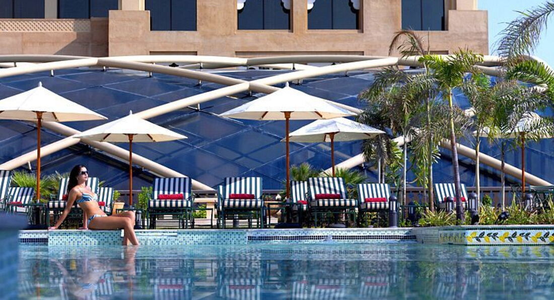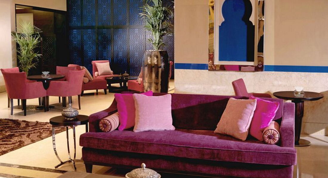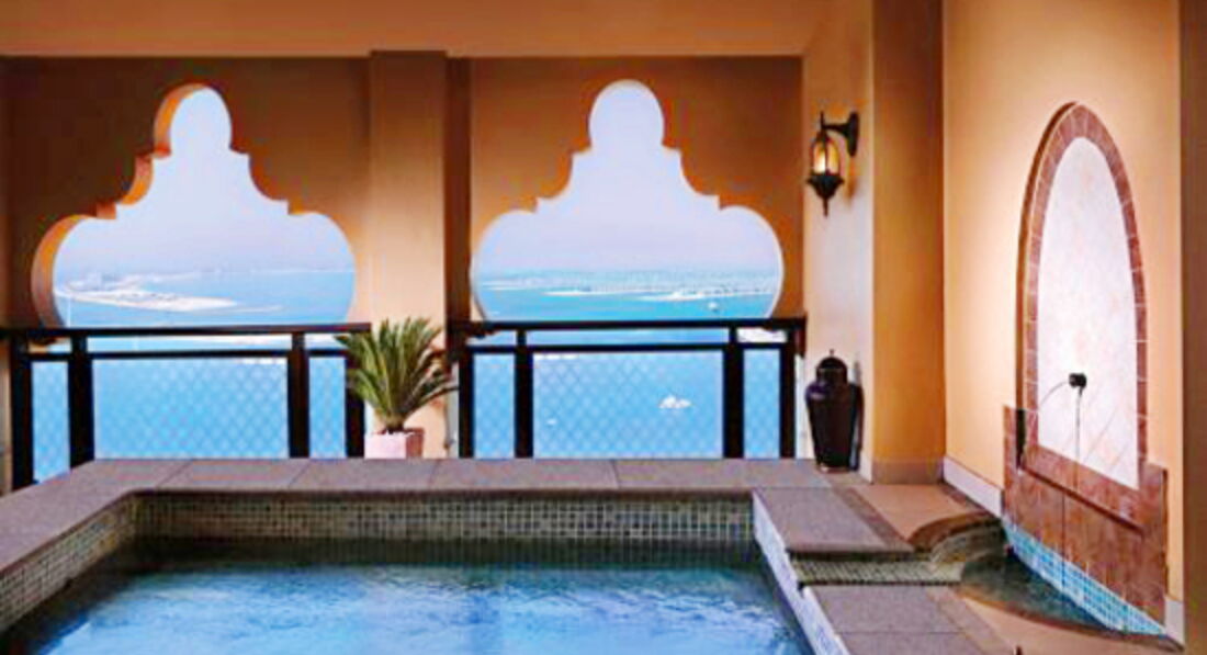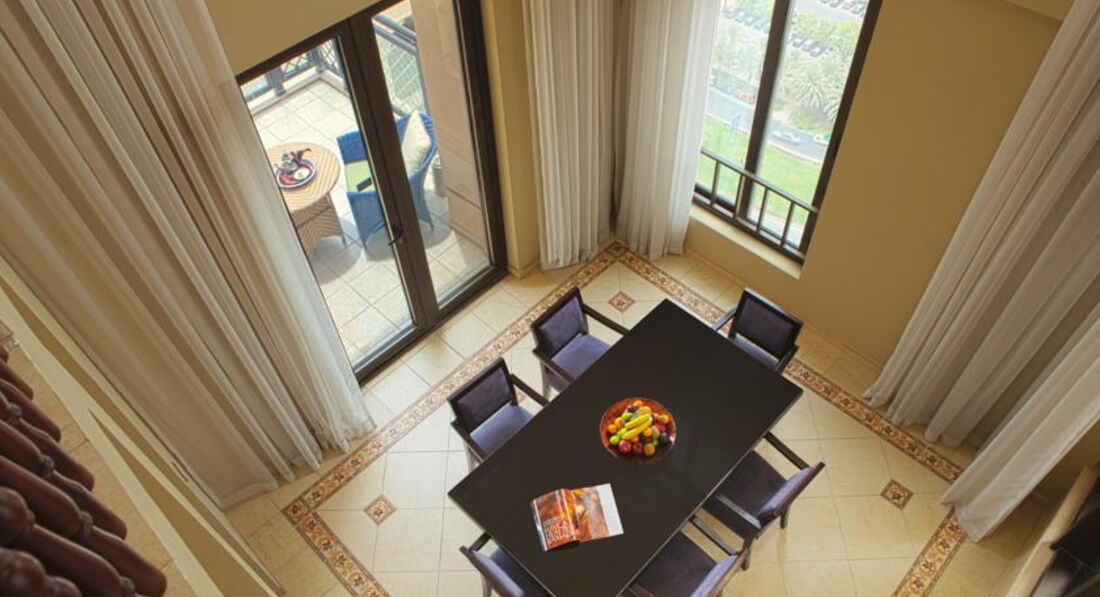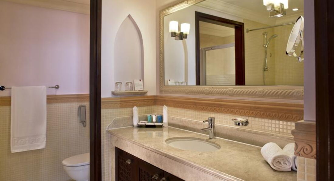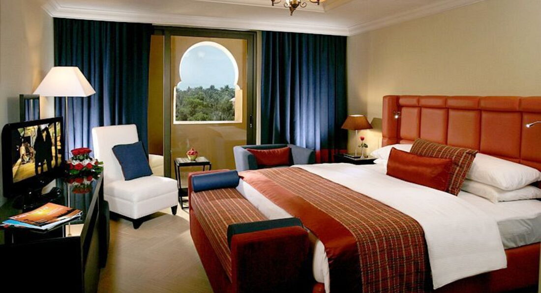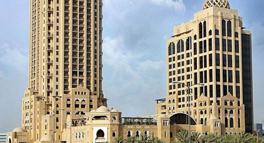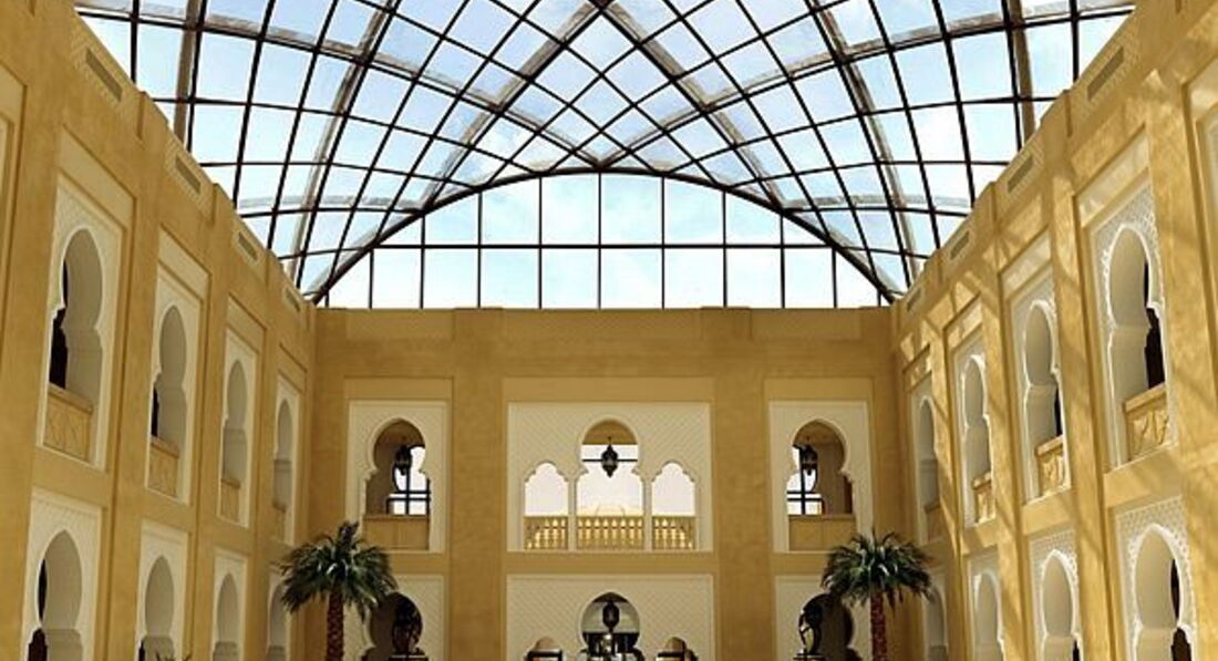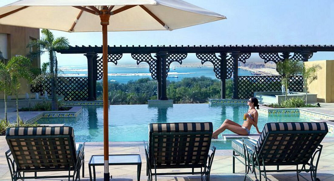 Готель у мавританському стилі, велика частина номерів має вид на море та острів Пальма Джумейра.