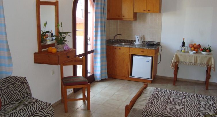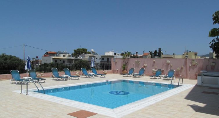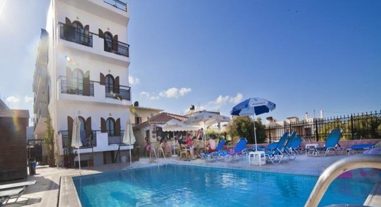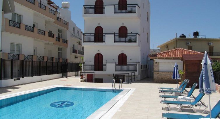 Компактний апарт-готель. Усі номери з обладнаним кухонним куточком. Вдале розташування в курортному містечку Малія, за 10 хвилин ходьби від центру, де зосереджені магазини, ресторани, бари та нічні клуби. Рекомендуємо для молодіжного відпочинку та любителів вечірніх розваг. Збудований у 1990 році. Останній ремонт проводився у 2012 році.