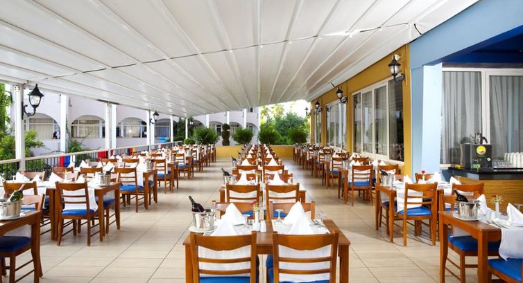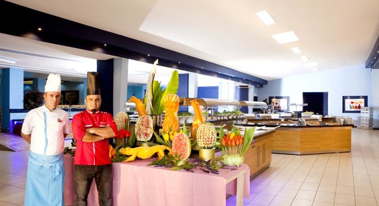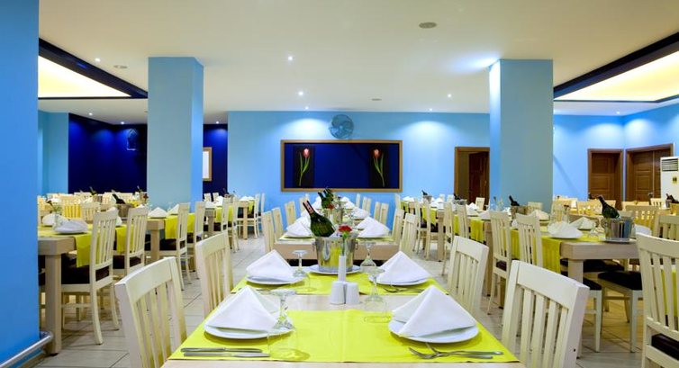 Бари та ресторани: головний ресторан розрахований на 750 осіб (критий, з кондиціонером, літня тераса, дитячі стільці), лобі-бар (10:00-24:00), бар біля басейну (10:00-24:00), бар на пляжі (12:00-16:30), диско-бар (24:00-03:00) та ін.