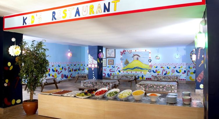 Про ресторан и не только. Повара молодцы! Три года не была в Турции и такая приятность)) Очень вкусно готовят, даже наши крошки привереды каждый день, два раза в день если вкусные супы и не только! Детские стулья есть, но на два зала и террасу всего четыре. Про мясо, птицу и рыбу: великолепные стейки из индейки на гриле, грудка индейки и говядина была замечена в овощных рагу, жаренная скумбрия или сардины на гриле почти каждый день. Овощи и зелень в достаточных количествах, оливки и маринады все тоже есть. Десерты в ассортименте, пахлава была может и не один раз, но мы были всегда к концу ужина.. Из фруктов были арбузы, яблоки, апельсины и возможно что то еще- не брала, но к концу и брать нечего, наши как после блокады.. Про детский буфет: я его не заметила, ну или его уже нет при новых владельцах. Ущерба для себя не увидела, ребенок голодным не был ни разу. Утром каши, хлопья, омлет или блины, на обед и ужины супы, овощи и немного рыбы или мяса.