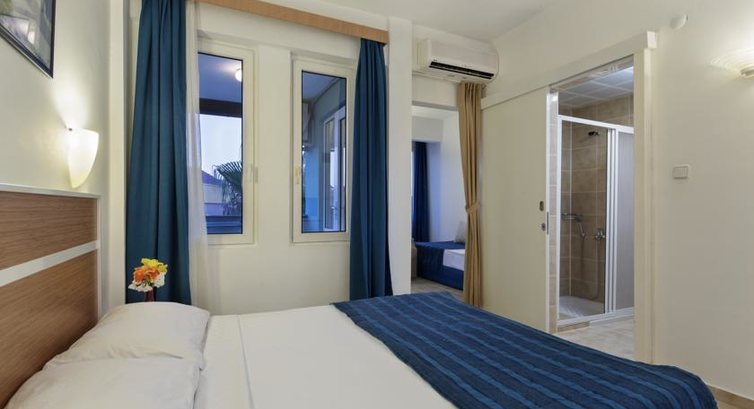 Отель классный! Поселили нс с мужем в номер возле ресторана (просили ближе к морю), это и есть ближайший к морю корпус. Приехали в 14 поселили через 10 минут! Гиды Туртесовские замечательные, экскурсиями остались очень довольны, особенно на Памуккале гид Алтан просто умничка! Очень хорошо знает русский и очень интересно обо всем рассказывает! Только не в коем случае не ведитесь и не покупайте ничего на текстильной фабрике и винном заводе (там останавливаются по пути в Памуккале) - там очень дорого, возле отеля тоже самое в два раза дешевле! В отеле горячая вода была постоянно! Вход в море и пляж безупречны (кто не безногий, три метра гальки пройти сможет, это даже приятно)! Еда разнообразная особенно блюда из курицы! Для детей все условия!!! Слышимость в номере хорошая конечно,но мы за день так уставали, что спали без задних ног! Персонал отличный! В общем, по-меньше снобизма и от отдыха останетесь в восторге! П. С. Мы в Турции не в первый раз! Нам есть с чем сравнивать!!!