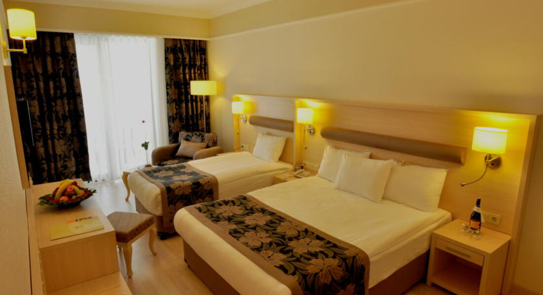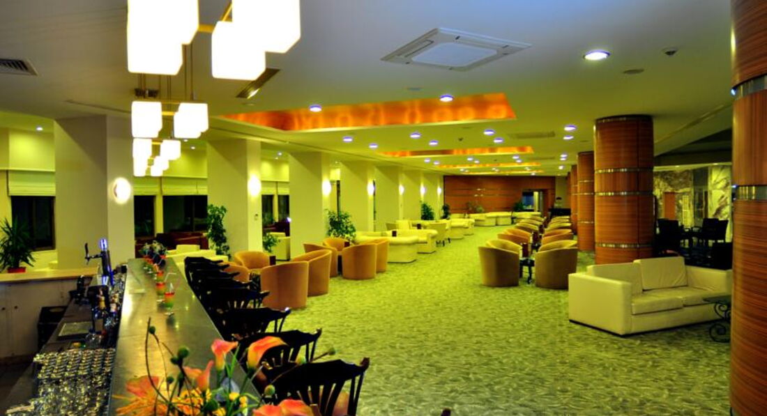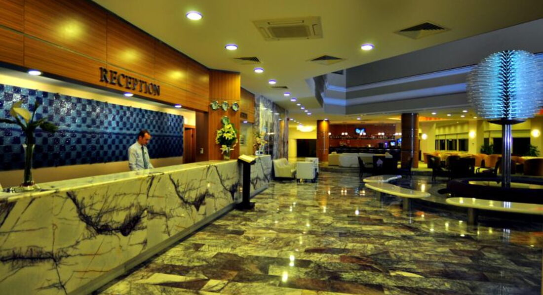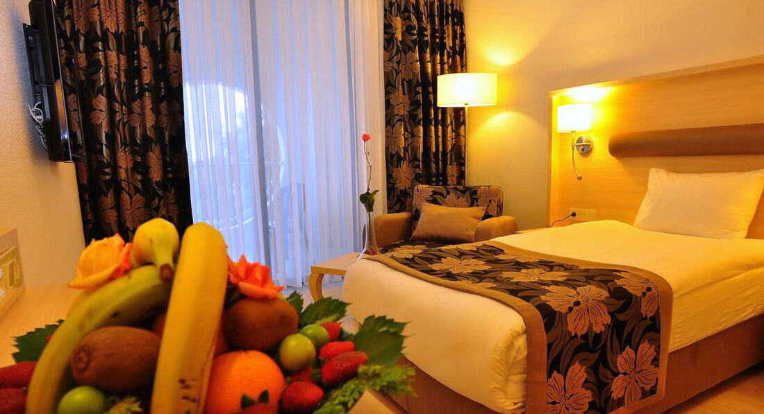Отдыхали с мужем в мае. Расскажу о своих оценках поставленных отелю. Прилетели, в автобус погрузили, привезли самых последних. 2 часа езды. Но ладно.. тез тур, решил так. С чемоданами на ресепшн.. там девушка, русскоговорящая,всеми силами рекомендовала заплатить за номер с видом на море за 9 евро., после пятиминутных наших отказов нам выдают ключ от номера на первом этаже, у самой сцены анимации. Мы просили нам номер поменять,на что нам отказали, так как в отеле мест нет, только лишь платные с видом на море.на самом деле отели был заполнен лишь наполовину.( 500 чел) сказали, будем ждать пока освободятся другие номера.где то адмистратор с недовольством дала нам номер на 3 этаже в дальнем корпусе. Номер небольшой, с одной кроватью, большой телевизор с российским ТНТ, маленький балкон,холодильник с водой. Ну вообщем как обычно.. НО.. на полу светлый ламинат, ГРЯЗНЮЩИЙ босиком не пройти! Белье чистое, но рваное! Пошли мы на обед, еда норм, но на один вкус. Всегда фрукты. Грейпфрут, яблоки, апельсины! Курица, телятина, индейка. Еду найдёте!Потом пошли на пляж.. где то 300 м. На пляже кафешка, очень понравилось, что обслуживают официанты!там же лепешку пекут.. и стоит палатка где продают фрукты. Дыня,черешня. Очень вкусно и дёшево 2 $кг. Анимация никакая. Есть прекрасный Релакс бассейн, кто любит тишину. Вообщем все неплохо... НО. Когда отель заполнинился полностью, началась жара. .. лежаков в 8 утра нет!! Приборов в ресторане нет!! Про километровые очереди в ресторане вообще молчу!! Отель не готов к такому количеству людей. Приятный бар на лобби. Бармен Зафер очень приятный, может удивить изысканными напитками. Баня есть.НИКАКАЯ. ( в турциии 8-й раз) время даже не тратьте. Что разочаровало как росли цены на интернет, от 5 до 11 баксов.. 11 баксов 3 дня!!!! К любым условиям можно привыкнут, отель на 4. Не больше. Хорошего отдыха и не расстраивайтесь по пустякам!