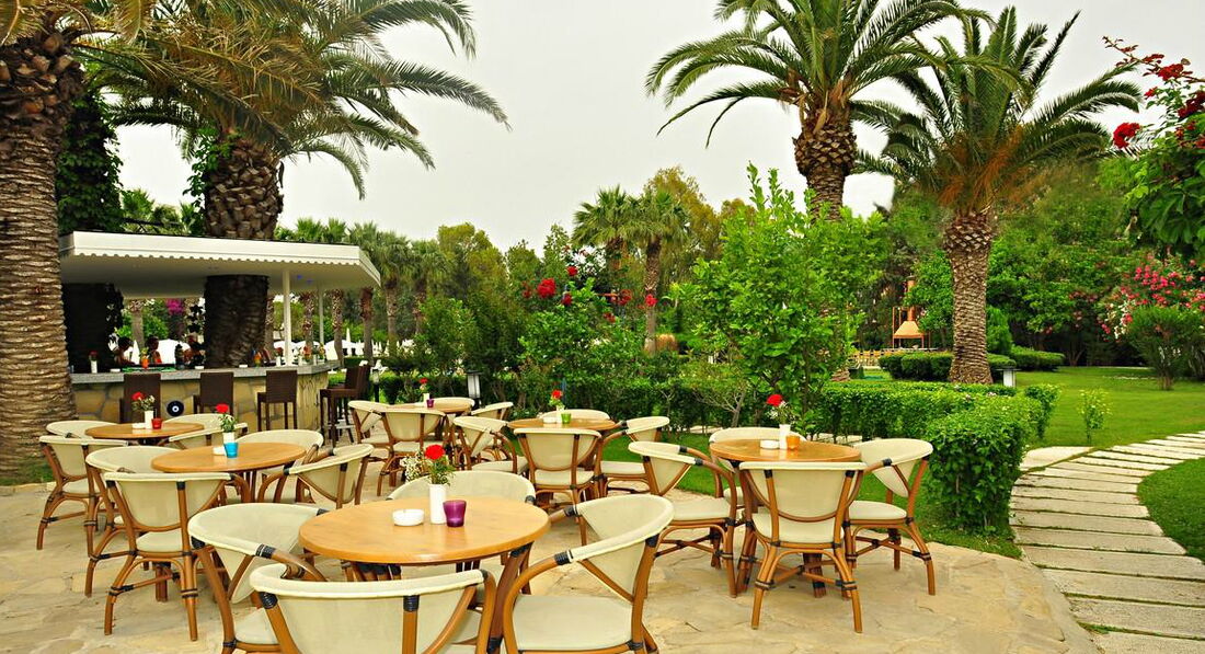 Приехал в этот отель в конце мая. Как и положено в 14:00 заселили в номер в корпусе Garden на первом этаже. Был выход на балкончик с прекрасным видом на бассейн. Анимация хорошая - взрослая и детская. Для молодежи есть дискотеки. На мой взгляд весьма интересные с хорошей анимацией ди-джеев и клубными танцовшицами. Каждый день на сцене проводились разнообразные красочные шоу. Среди постояльцев отеля много граждан Германии, Украины, Литвы, России, Турции. Есть отдыхающие из стран СНГ, Европы и Африки. Но основной контингент это немцы, русские, украинцы. Питание на хорошем уровне и отличается качеством и разнообразием. Хорошие напитки, в том числе и алкогольные. На территории отеля 2 взрослых и 2 детских бассейна, горки для детей. Организованы анимация и питание у бассейнов, в том числе напитки и мороженное. Пляж рядом с территорией отеля, где можно перекусить и выпить напитки и прекрасное пиво (все бесплатно - на территории собственного пляжа отеля находится кафе). При заходе в воду глубина начинается сразу. Пляж песчаный с небольшим количеством мелкой гальки. Вода чистая и прозрачная. Пляж убирается. Полотенца выдаются бесплатно по карте в Spa салоне. В спа салоне можно с 13 до 16 бесплатно посетить сухую сауну, парилку и хамам. Все на хорошем уровне. В первый день бесплатный массаж 15 минут - легкое поглаживание спины. Процедура из 5 сеансов стоит 200 $. Я считаю что цена завышена в 3-4 раза. Если бы за один сеанс брали 10-15 $ то в салоне могло быть больше посетителей. Служба безопасности отеля работает на высоком уровне, но советую для хранения ценных вещей арендовать сейф за 1 евро в день, так как электронная карточка-ключ на мой взгляд может открыть любую дверь. Сейф почему то заблокировался на 2 день, но звонок на рецепшин решил эту проблему в течении 20 минут. Возможно электрик отеля так зарабатывает чаевые. Чаевые (бахшиш) можно давать в российских рублях. Но это по желанию - с вас их никто требовать не будет. Персонал очень отзывчивый и дружелюбный, знает немного русский язык. Уборка ежедневная на должном уровне, включая замену полотенец - их 5, как и положено по числу звезд отелей. На выходе из отеля курсируют автобусы и такси в Манавгат - №2 и Сиде № 11 каждые 10 минут, обратно № 10. Проезд 3 лиры или 1 доллар (1 евро). Автобусы чистые и с кондиционером. Местное население очень дружелюбное и доброжелательное, правда не все говорят по русски. Безопасность в Сиде и Манавгате на очень высоком уровне. Городская полиция знает русский. Можете смело к ним обращаться если заблудились. В городах в ходу доллары, евро, лиры и в некоторых магазинах рубли. Сдачу дают в той валюте в которой расплачиваетесь. По приезду можете разменять деньги на рецепшине. Интернет в отеле платный - 9 евро в неделю. Качество сигнала по всему отелю, в номере, на пляже - отличная - 10 Мб/c. Рекомендую отель семьям с детьми, взрослым и молодежным компаниям. Если вы поедете в одиночку, то тоже скучать не придется - развлечения и экскурсии на любой вкус. Огромная благодарность гиду из АнексТур Эльнуру, который мгновенно решал любые организационные вопросы и отлично говорил по русски. Можете смело к нему обращаться за экскурсиями - не пожалеете. Все организует точно по времени и с превосходным качеством. Экскурсии за территорией отеля дешевле, но сильно проигрывают в качестве и многие кто их брал были разоча