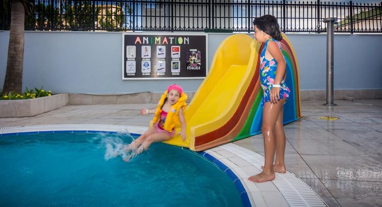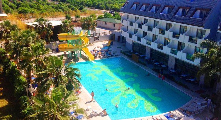 Приехали в отель в 6 утра по местному времени, заселили как ни странно сразу, даже предложили на выбор 2 номера. И это единственный плюс со всего отдыха в этом отеле. Дальше начался кошмар. Пока мы в первый день были на пляже в нашем номере делали ремонт! когда мы вернулись весь пол в ванной и номере был в строительной смеси! когда спросили на ресепшене, что это вообще такое и почему не убрали, нам ответили,что все нормально, был ремонт, сейчас уберем! как такое вообще возможно?!!! НО ни через час, ни через два никто ничего не убрал! В итоге я пошла в коридоре поймала горничную и за руку и привела в номер,что бы она помыла пол! она полувлажной тряпкой тиранула и убежала. Потом 4 дня к нам вообще никто не заходил! не то что бы постель поменять, даже мусор не выносили!! Когда подошли в очередной раз на ресепшн с просьбой наконец убраться, нам ответили, что так часто они не убирают... в итоге в течении 10 дней нашего прибывания в этом "чудном" отеле у нас 3 раза выбросили мусор и заправили кровать, ВСЕ!!! постель и полотенца не меняли НИ РАЗУ!!! одно полотенце ножное вообще на третий день прибывания забрали, а новое так и не дали. Ни геля для душа, ни шампуня в принципе нет! только жидкое мыло и то разбавленное. Такого я не видела даже в 3* отлелях. Анимация отдельная история, каждый день один и тот же танец у бассейна под одну и ту же песню. Аниматор турок по-русски знает три слова, пытается еще что-то говорить со сцены ... Еда однообразная, из мяса только курица и то не всегда есть! прокисшая картошка.На пляже из напитков какая-то сахарная жижа и свежевыжатый сок платно!1$!И что самое обидное отдохнули мы в этом 5* отеле за 1500$!!! кто дал эти 5* не известно! то ли обкуренный алкаш, то ли ему угрожали жизнью, просто и не знаю какие еще варианты...