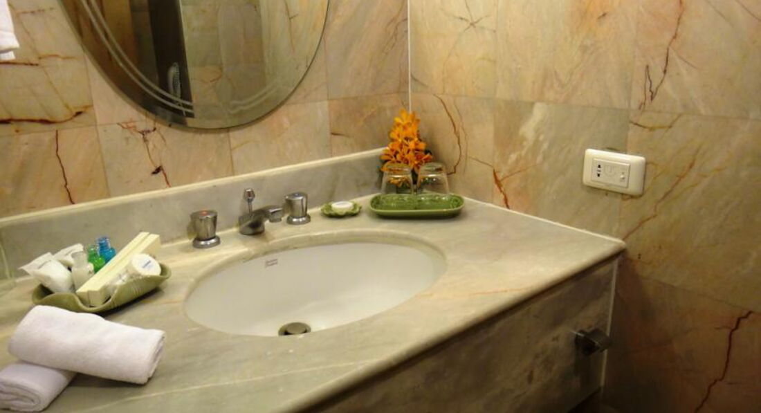По поводу отеля: Отель-многоэтажный , лифты работают хорошо. Стоит догадываться , может нас, как русско-язычных расселили на таком этаже, но если честно, то в отеле не было реновации давно. Очень уж больно "ушатанный" он. В коридорах потертые обои , ковролан не первой свежести, двери облезлые. В санузле плохо работала сантехника( унитаз ). Не стали обращаться за помощью, поскольку останавливались на 2 ночи . Кондиционер не включали, было прохладно в номере. Номер невеликих размеров, но мы и не капризничали, поскольку только ночевать приходили.