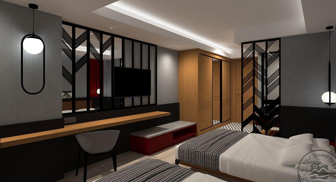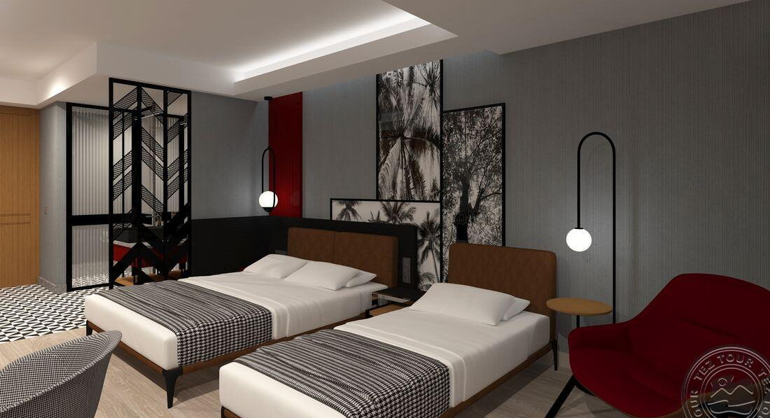 • 50 двокімнатних family rooms (2 спальні з дверима, макс. 4 чол., 56 м2)