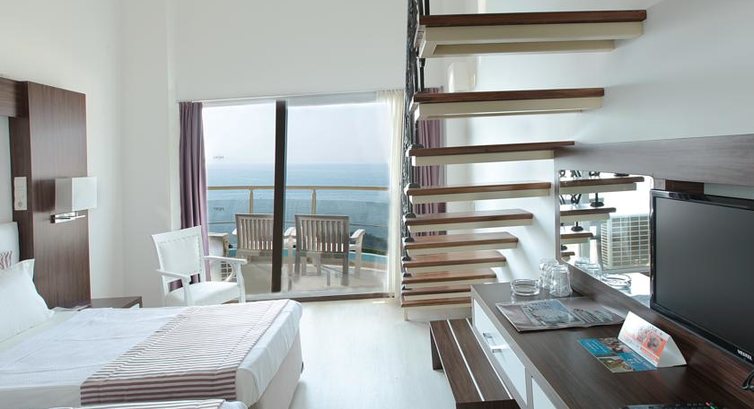Были с 1 по 8 августа. Заселили быстро, за 20$ бакшиша получили шикарный двухуровневый номер, на каждом этаже санузел с душем, ТВ, шкаф, кондиционер. В итоге дети разместились на 1м этаже на двух полутораспалках, мы - наверху на большой двуспальной кровати. Никто никому не мешал :) Убирали почти каждый день. В душе есть мыло, гель для душа, шампунь, ватные палочки, нитки - все с символикой отеля, пустячок, а приятно. Работают 2 лифта (двухэтажные номера на последнем, 6м этаже.). Русских отдыхало мало, много было турок и поляков. Также были немцы, бельгийцы, литовцы, румыны. Пляж небольшой, но удобный - море в 2х шагах. Немного напрягали водоросли, периодически выбрасываемые приливом. Но бич-бой регулярно их убирал. Необычное расположение отеля - высоко над морем, предполагает регулярную зарядку для ног. Чтобы попасть на пляж, надо из лобби спуститься по ступенькам на 4 этажа вниз - по порядку идут: 2 бассейна (один детский с горкой), там же сцена для вечерних шоу-программ и столики для желающих поесть не в помещении), ниже - детский клуб (там как правило еще давали закуски между основным питанием), далее игровой этаж (1 стол для пинг-понга, бесплатно можно поиграть; 2 стола для бильярда-американки, также детские развлекухи (немного), там же есть крытый бассейн со спа-салоном и турецкой баней. Далее ниже уровнем - еще один открытый бассейн, рядом ресторан, терраса с видом на море, великолепные реликтовые сосны, можно полежать на лежаках в тени, можно выпить турецкий кофе за 1 евро. К слову, бесплатные кофе и чай в отеле непотребного качества, мы в ближайшем магазине купили обычный липтон в пакетиках, его и пили. И только пройдя все выше перечисленное и спустившись еще на один уровень по ступенькам, вы попадаете на пляж. Лежаков свободных достаточно, но народ все же занимал утром самые "вкусные" места. В первой половине дня пляж находится в тени, и отдыхающие, желающие позагорать, располагались наверху, у бассейнов. Я предпочитала спокойно посидеть/полежать у моря, дети резвились выше этажом в бассейне, там же был и муж. Днем в отеле тихо, никакой долбежки на пляже нет, только в соседнем отеле слышна музыка. Если вам нужен спокойный отдых - рекомендую. Единственный минус для нас был - это большой перерыв между обедом и ужином. Обед заканчивался в 14-00, потом вроде как был какой-то перекус в кидс-клабе, но я реально ничего для нас там ни разу не брала, дети макароны с овощами не любят, и печенье в 17-00 было ну очень убогим. Зато на ужин, начинающийся в 19-30 (ну очень поздно, на мой взгляд) и продолжающийся чуть ли не до полуночи, легко можно подпортить фигуру тортиками, картошкой фри и прочей вредной вкуснятиной. Алкоголь мы не пьем, отзывов не могу оставить, но народ там регулярно брал виски с колой и пиво, при этом пьяных "в дрова" никого не было, даже на день ВДВ :)))