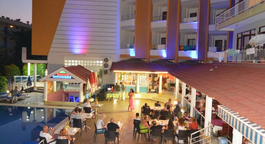 Главная особенность отеля в том, что на русских отдыхающих он не ориентирован (может что и изменилось с тех пор): персонал по русски не говорит, русские в отеле бывают редко. Нас это совершенно не напрягало, в отеле много молодежи, замечательно общались с европейцами. Отель больше для молодежи чем семейный, тут достаточно шумно. Территория отеля маленькая, опять же это характерно для отелей 3* в Алании.