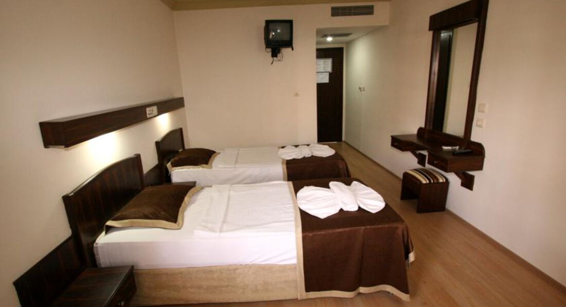 Отдыхали парой в данном отеле с 08.05.2015. Забронировала номер с одной большой кроватью. На деле оказалось, что кроме кровати в номере ничего и нет. Очень маленький, даже угнетающий. Попросили другой номер, сразу менять не хотели, но после долгих просьб, дали ключи от нескольких номеров(типо единственные свободные), но они были не лучше. Взяли номер на самой крыше с двумя очень маленькими комнатами. В ванной не развернуться, душ льется прямо на унитаз, в раковине не умыться(очень маленькая). Единственное, что радовало окна выходили на гору и море. До пляжа недалеко, мин. 4 медленным шагом. Сам пляж городской, лежаки платно. Полотенца не дают, берите с собой. Питание очень скудное. Сначало приходили через полчаса после начала завтрака,обеда, ужина, но еды почти не находили. Один вид мяса (курица или говядина), иногда вообще ничего. В основном салаты и еще раз салаты. Потом решили приходить во время и увидели огромную очередь желающих, сметавщих все на своем пути (русских в отеле почти нет). Выбор конечно стал чуть больше, но ненамного. Пару раз давали картошку фри. Один раз были блины. Омлеты не вкусные. В основном овощи и салаты. Бассейн не большой, но с горкой. Не самый луший отель из 3 звезд.