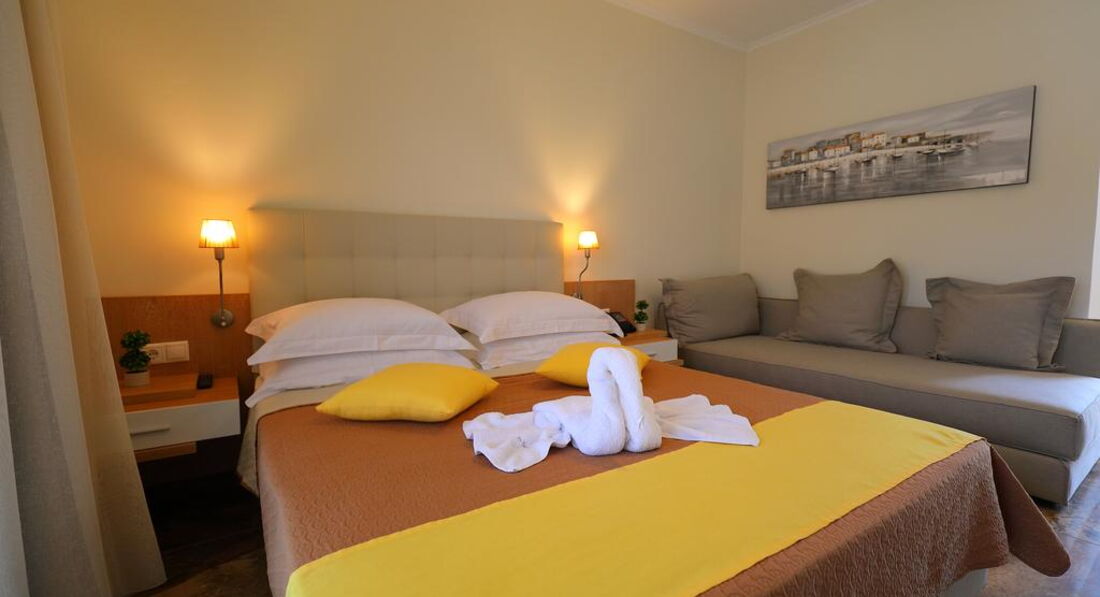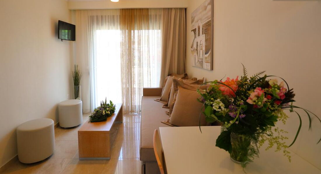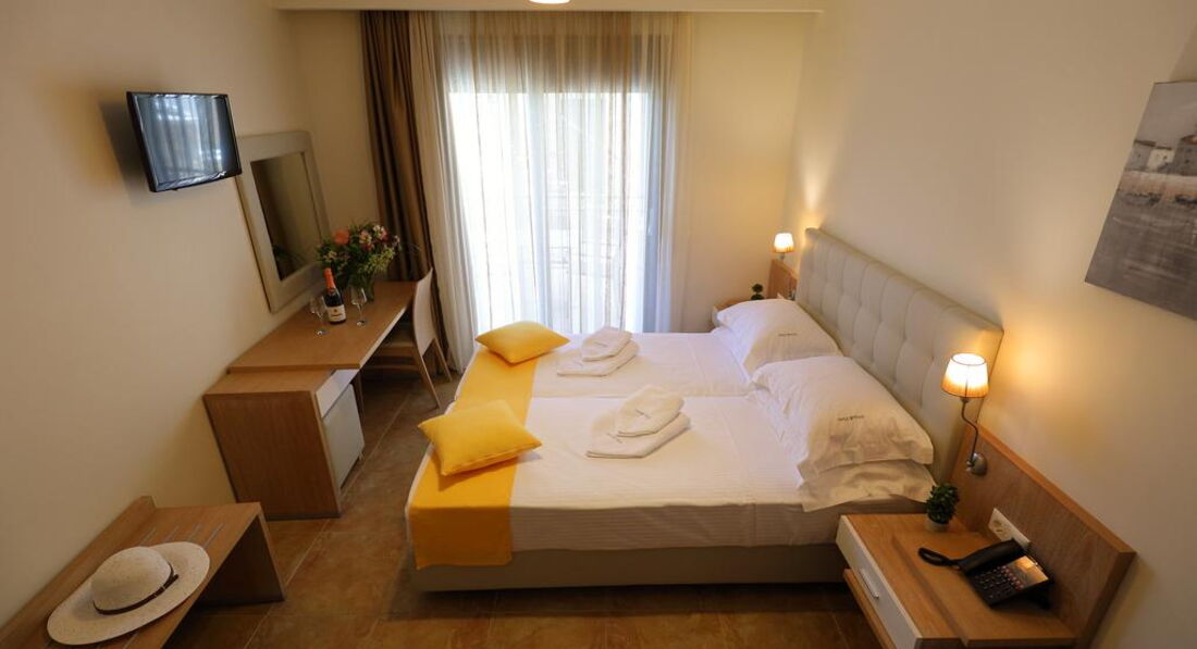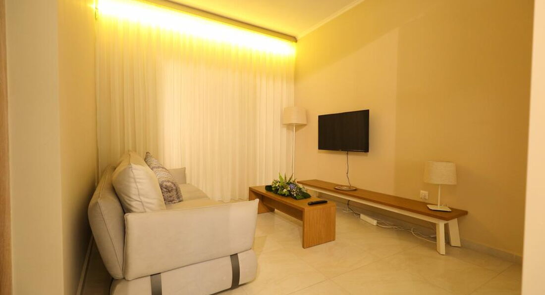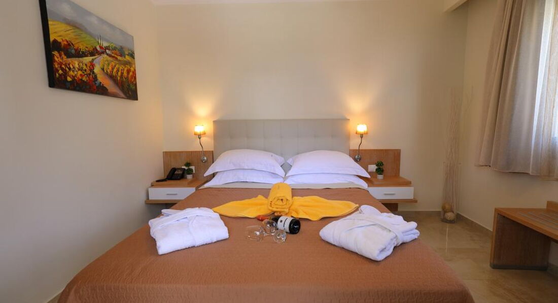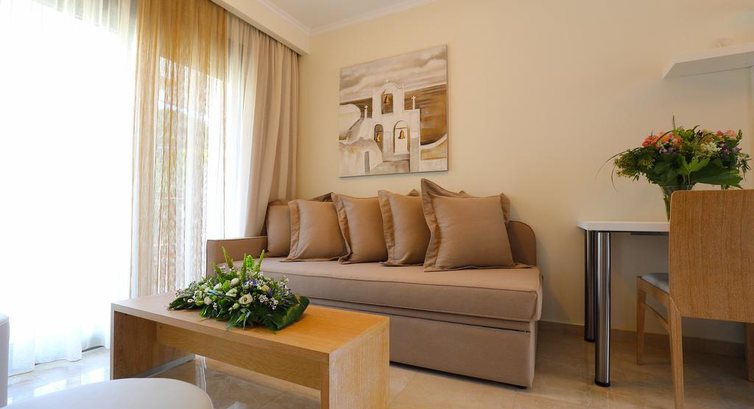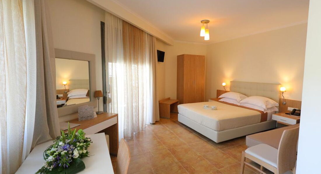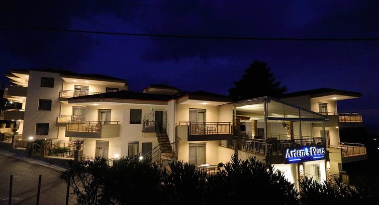 Готель розташований на узбережжі Іонічного моря, в мальовничому селищі Лурдата, в межах пішої доступності від основних туристичних визначних пам'яток, ресторанів, барів та магазинів. Апартаменти Artemis Plaza розташовані в селищі Агія Параскеві. Затишний готель, сучасні комфортабельні номери, інтернет, кафе-бар, якісне обслуговування. Побудовано у 2015 р. 5 невеликих двоповерхових будівель, об'єднаних між собою. Готель чудово підходить для відпочинку сім'ям з дітьми.
