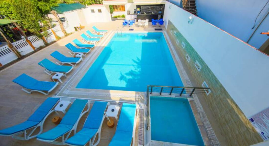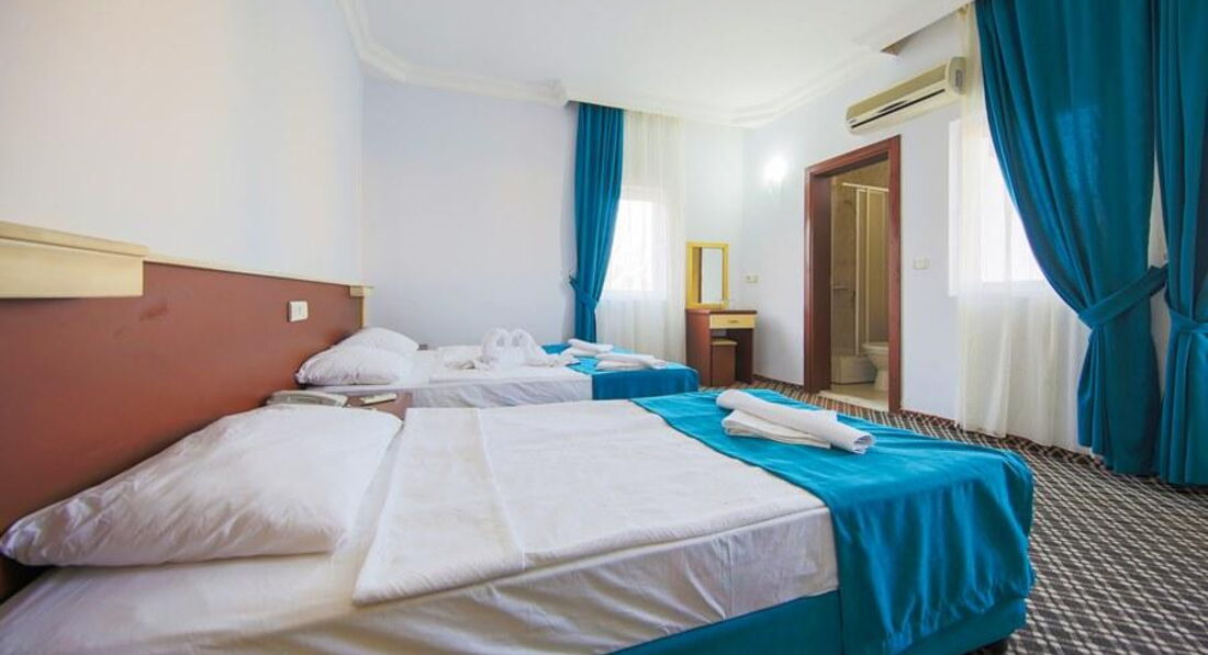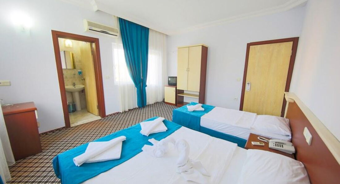 Все началось с того что принимающая сторона тур оператора не знала где находится этот отель! Но это минус оператора несомненно. Отель находится в Бельдиби, хотя многие продают его как Кемер, но я читала отзывы до отъезда, поэтому ожидаемо. От отеля до моря минут 7 ходьбы, до ближайшего магазина еще меньше, рядом есть продажа экскурсий. В принципе инфрастуктура вокруг отеля хорошая. Только автобус экскурсионный до отеля не проедет т.к. он находится в глубине и негде развернуться. Что касается самого отеля, когда мы приехали (в 11 вечера) ни о каком ужине речи и не шло, хотя должны были приехать в 20.00, на наши просьбы сделать хотя бы бутерброды нам сообщили что кухня закрыта. Заселили сразу же ,но только с третьей попытки, потому что те номера что нам предлагали совершенно убогие. В первом номере на площади в 12 кв.м. они умудрились разместить две односпальные кровати, тумбочки,шкаф и холодильник с телевизором. что уж говорить о том какое расстояние осталось между стеной и кроватью для прохода, можно пройти только боком. Был балкон, но он тоже мизерный т.к. стоявший на балконе пластиковый стул не позволял даже открыть балконную дверь. Мы отказались от этого номера, нам предложили другой, он намного больше и балкон хороший, единственный минус в том что замок на двери не закрывался! как бы не пытались нам показать как им пользоваться, но ничего не выходило. В итоге нам на двоих предоставили трехместный номер, видимо из жалости т.к. время было уже около 12 ночи. В итоге номером остались довольны, хотя бы потому что он просторный и чистый, мебель и техника не первой свежести, но не на столько все страшно. На счет питания. Завтрак-шведский стол, но выбирать особо нечего, огурцы помидоры, разные сыры, варенные яйца и джем. Каждое утро однообразно, Обед и ужин полноценные, с голоду точно не умрете, НО! обратите внимание на супы, их аромат и вкус либо особенность национальной кухни либо особенность отеля, с ними осторожней.Из фруктов были плоды с соседнего дерева, я не знаю как они называются, да и в мае мне кажется еще рано для подобного. Что касается бара, музыка однообразна, по ходу один диск который играет каждый день. Из напитков было только вино красное, в соседнем магазине коробка этого вина стоит 1,5 $, о вкусе что-то говорить это лишнее, добавлю что в последующие дни его стали разбавлять, что вообще нас отвадило от бара. Бар становится платным после 21,30, за бокал вина отдадите 3 $. Пива нет, коктейли делают, но в качестве алкоголя сомневаюсь. Лучше не поленитесь и дойдите до магазина, там есть прекрасное вино NUR стоило 6$, берите и не пожалеете. В целом в отеле делать нечего ни днем ни вечером, поэтому ищите развлечения себе самостоятельно. Кстати на счет WiFi, дождитесь своего гида и спросите у него, т.к. мы заплатили на двоих 10$ за все время пребывания (сомнительный администратор просил никому не рассказывать о цене, но это все и так понятно), но ловит он только в лобби, ресторане и возле бассейна. И последнее, на ланч боксы можете не рассчитывать, получите их только если сами придете на кухню и попросите повара. Персоналу на вас параллельно, делают что-то изредка и то если вынесешь мозг.