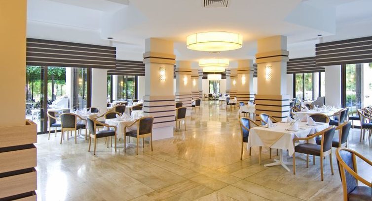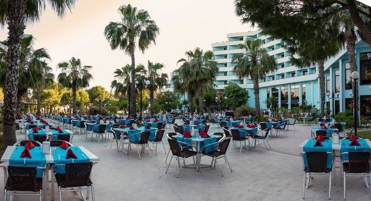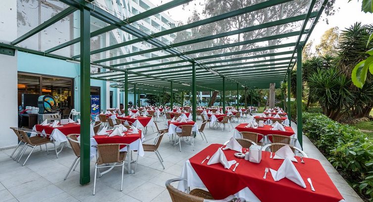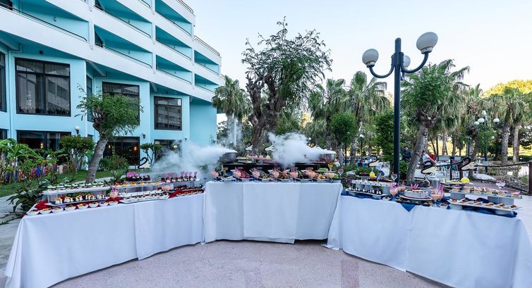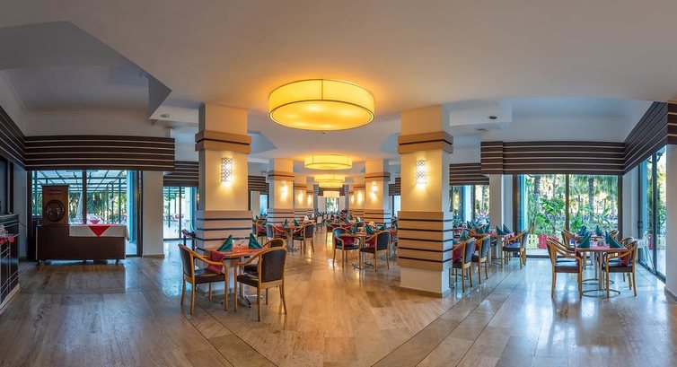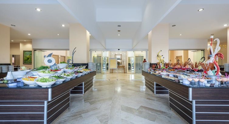 Бари та ресторани: головний ресторан – міжнародна кухня, розрахований на 1000 чол., критий, тераса, є дитяче та дієтичне меню; бар на пляжі (10:00-17:00), бар біля басейну (10:00-00:00), лобі-бар (10:00-24:00), снек-бар (10:00-17:00) ), диско-бар (23:00-04:00) – безкоштовно; вітамін-бар (08:00-24:00) – платно. 3 A"la carte ресторану: італійська, турецька, рибна (платно).