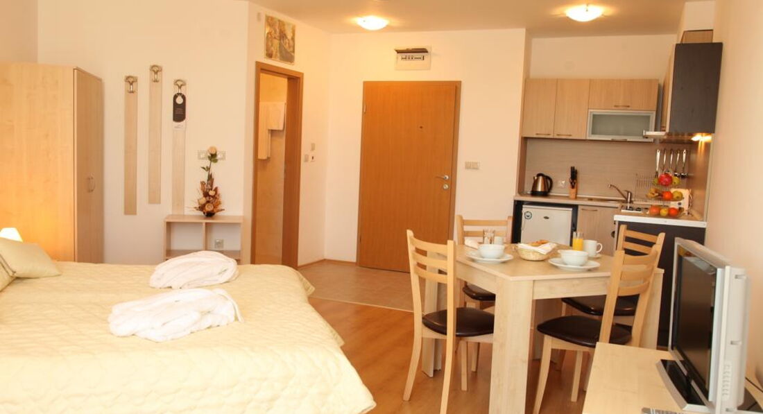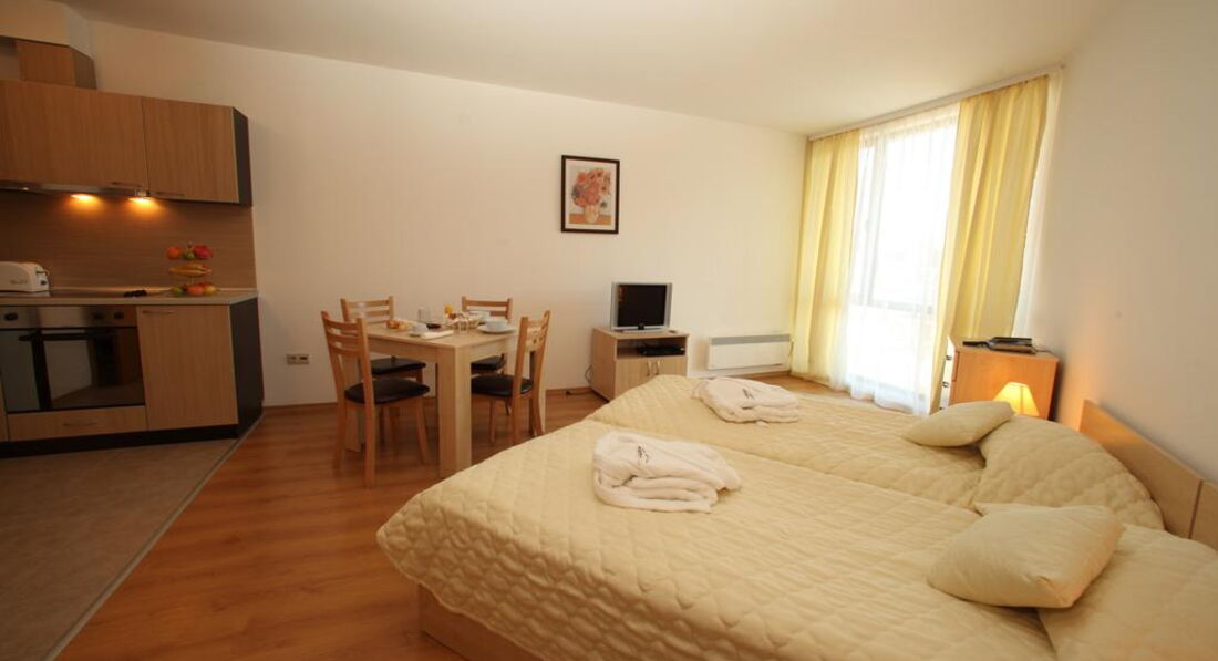 Типи номерів: 76 Studio (Площа номера 30-35 кв.м.) 53 Apartment 1 bedroom (Площа номера 45-50 кв.м.) 19 Apartment 2 bedrooms (Площа номера 65-70 кв.м.)У номері: