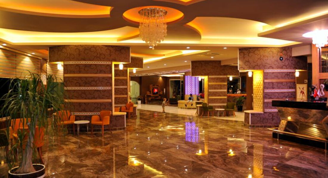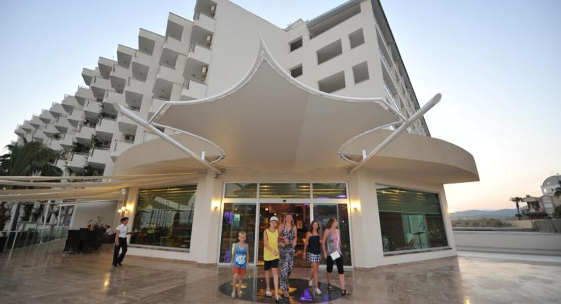 Отдыхали с мужем и ребенком 5 лет. Первый раз в Турции, и в отеле такого уровня. Всегда отдыхали в Египте и в отелях 5 звезд. Приехали мы в отель в 22 часа на ужин не попали накормили вечерним супом, но были с дороги так что нам было не так важна еда как бегом душ и спать. Номер дали на 5 этаже я не привереда мне все равно какой, но тут меня смутил, но подойдя на reception мне заменили без всяким разговоров без доплат и с видом на море. Отель не большой но уютный. Еда нормальная за 10 дней не было такого, что нечего кушать. Макароны, рис, картошка, пюре даже было. Рыбы, кура, индейка вообщем все хорошо. Про десерт я молчу..)) это вообще не обсуждается я восторге. Море чистое, но каменистое дно, но меня это не смущало, берег песчаный. На море переход под дорогой, но нас это не напрягало. Мы были еще народу было не много так что шезлонгов хватало, не могу сказать, что будет потом. Полотенец пляжных нет, но ерунда там в лавке можно купить. Есть люди которые брали полотенца из номера, но по пляжу ходят и собираю, так что не советую этого делать. Анимация слабая, но что делать) есть пару горок но тоже крайне не удобный график с 10.30 до 12 и с 14.30 до 17 нам показалось маловато. Сауна бесплатно только 12.00 до 14.00. Есть при отеле хамам но дороговатый мы ездили на выездной, брали у Tez tour не восторге. Вообщем все не описать я осталась довольная отдыхом. А вот теперь самое страшное. У меня в номере сперли 110$ кошелек был в рюкзаке а рюкзак в чемодане) но сама виновата надо было или сейф брать 2$ день или с собой носить. Но слава богу там замечательные ребята работаю на reception помогли мне просмотрели камеры подняли бунт между персоналом. Вызвали жандармов, но все решилось, уборщица взяла их но потом призналась и вернула мне и слава богу. Больше она там не работала. Если учитывать все плюсы и минусы то наверно я бы вернулась в этот отель, но только за такие деньги ( у нас на троих 45 тыс из Москвы) если дороже то наверно рассмотрела бы отель лучше.
