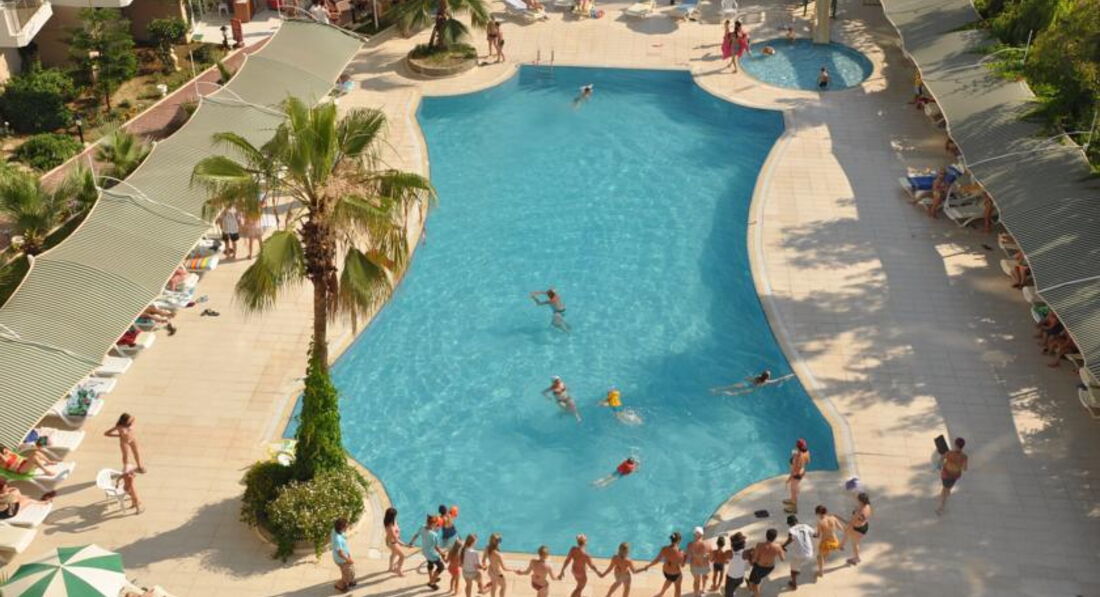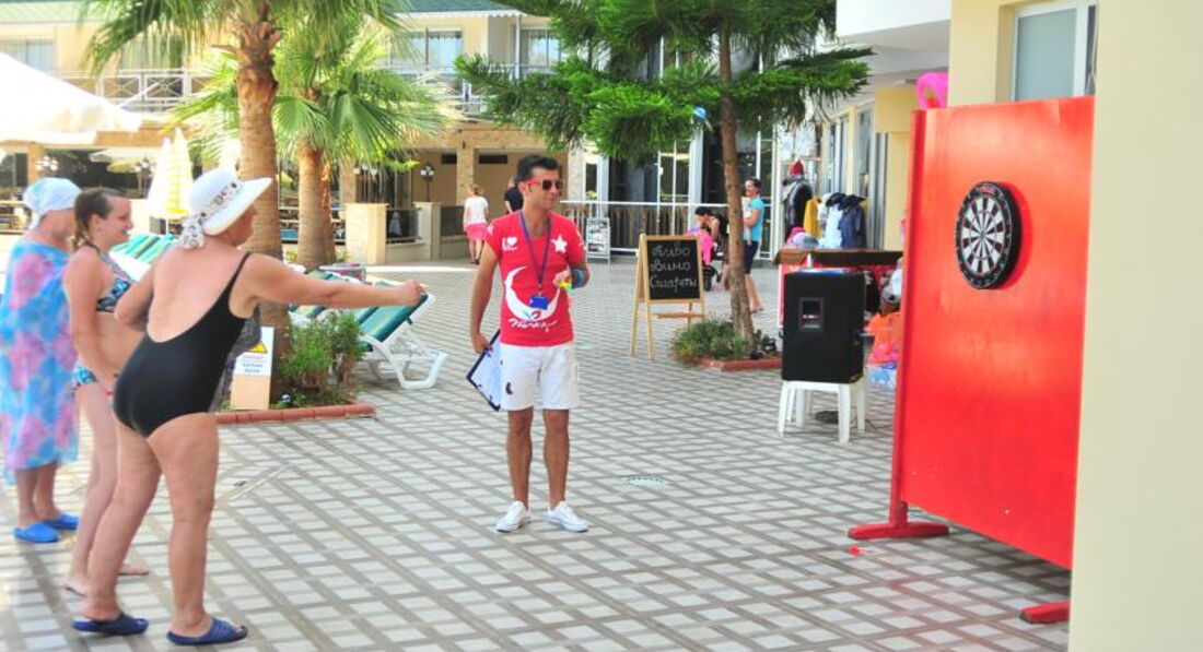 Доброго времени суток друзья! Хочу поделиться с вами своими эмоциями об этом замечательном отеле. Во первых анимация, взрослая и детская на высшем уровне. Весь персонал русско-говорящий. Для маленьких детей есть МИНИ-КЛУБ куда родители могут оставить своих шпингалетов, а сами могут спокойно сходить на море. В МИНИ-КЛУБЕ аниматорша Роза, очень добрая и приятная девушка. Она рисует с детьми, раскрашивает, мультики смотрят, в общем детям там скучно не будет. Есть дартц для взрослых и детей. Есть для девушек и женщин аэробика и аква-аэробика которую проводит профессиональный тренер по фитнесу по имени Изи. Есть пляжный волейбол, водное поло и всякие конкурсы в бассейне. Вечером детская дискотека, а после взрослая, ну или какой то конкурс с участием туристов. На территории три бассейна: большой, средний и для малявок. Есть две горки в среднем бассейне.С территории отеля можно сразу выйти на пляж. Есть бар в лобби, в ресторане, возле бассейна и на пляже.В общем всем советую ребята посетить этот отель, скучно не будет это я вам обещаю.