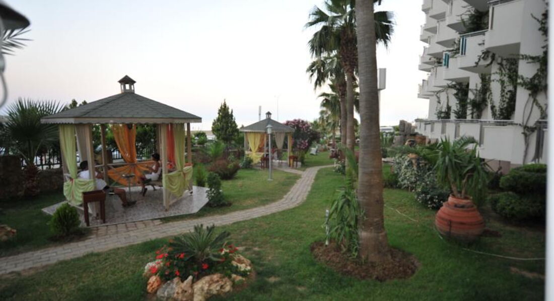 Это был пятый отель в Турции, в которых я бывал, иногда с семьей, иногда в одиночку, но всегда в 4-х звездных. Этот отель очень порадовал, ставлю его на 2-е место из 5-ти посещенных. По вежливости персонала вообще на первое место. В номере убирали каждый день, полотенца даже в избытке. Уборка конечно поверхностная, а мне много и не надо. В ресторане первый раз увидел, что можно взять еду, сесть за столик и попросить официанта принести любой напиток, алкогольный или безалкогольный. Все делается быстро и с улыбкой и пожеланием приятного аппетита. Очень много зеленки, были апельсины, яблоки, дыня. Сладкого разных видов хватает. По поводу питания ничего плохого не скажу, единственное грешу, что практически не было мясного, была курица и индейка, но мало совсем, почему-то порезанные на кубики, на гриле не готовили ничего. Была также рыба, а перед моим отлетом была на ужин форель запеченая, вкуснотища! Но недостатки ресторана скорее всего можно отнести на начало сезона, народу человек 100, думаю в сезон будет и гриль и мясо. Персонал везде в отеле только на позитиве, всегда улыбаются, всегда скажут доброе утро, спросят как дела, это все ненавязчиво, но приятно. Возле бассейна бар с 10 до 23-30 час., делают даже коктейли. Пляж через подземный переход, на пляже песок с мелкой галькой. Некоторые говорили, что грязный, однако я там грязи не видел. Стоят урны, их убирают регулярно. Лежаков с матрасами всем хватало. Вход в воду немного каменистый, дальше песок. Никаких неудобств при входе не возникало. Отлично, что на пляже есть бар, в котором с 10 утра до 16 час. пиво и безалкогольные напитки, С 12-ти до 16-ти часов картошка фри, макароны, гамбургеры конечно с соевыми котлетами, ну да ладно, помидоры и др. нарезка овощей. В Турции редко где встретишь бар на пляже в 4-ках. Анимация конечно хромала. В 21-30 детская, а взрослая или просто музыка, или отгадай кто это поет, один раз был конкурс мистер отель, но честно говоря слабенько, этому мистеру отеля даже никакой подарок не вручили. Может в сезон будет получше. Отель более семейный, чем молодежный. Напротив отеля дорога, рядом остановка автобусов. До Алании доехать можно без проблем, автобусы ходят с интервалом 15-20 минут. Проезд стоит 5 лир, если лир нет, то водитель содрет с Вас 2 доллара, что дороже. Ездили в Аланью на пляж клеопатра, отличнейший пляж, чистейший, вода голубая. Водителю нужно сказать Клеопатра бич, он остановит и скажет. Возле отеля есть немного магазинчиков, в принципе что нужно вы там найдете как по еде так и по вещям. Территория отеля ухоженная, зеленая, с беседками. Напротив есть отель Лонг бич 5 звезд, там живут 7 или 8 павлинов. Вольер у них за дорогой в 10-метрах. Вот они реально задрали кричать. Сначала было по приколу, но потом не меня, а других отдыхающих начало это доставать...Они реально кричат очень громко, отдыхающие в шутку готовы были их пустить на шашлык, жаловались что спать не дают у кого окна номеров выходили на Лонг бич.