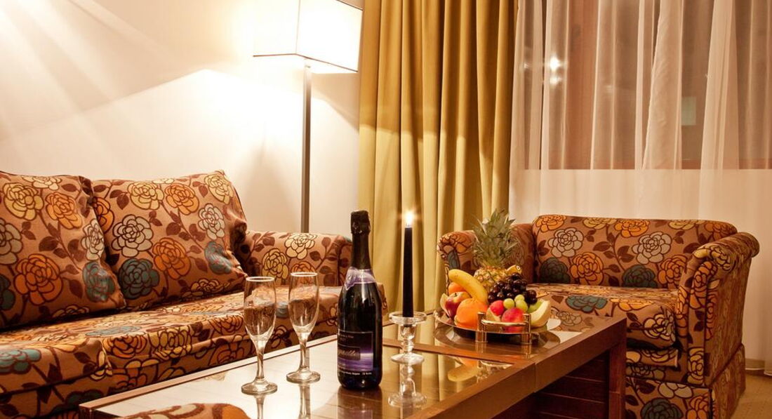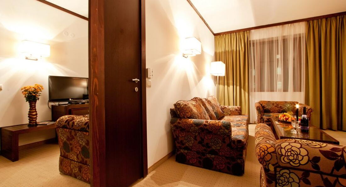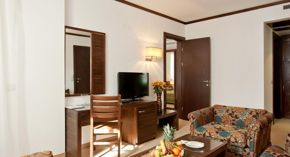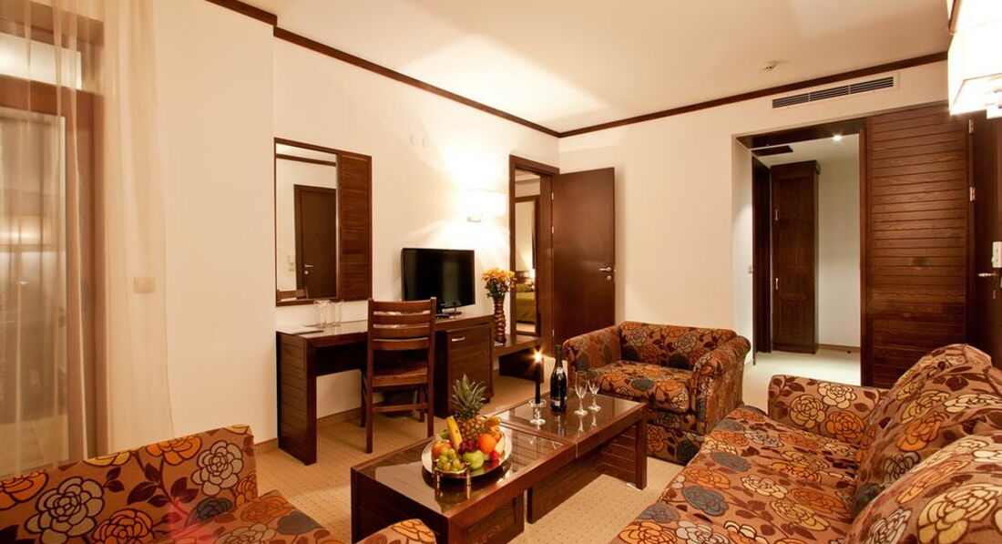 • балкон • кондиціонер • ванна/душ • санвузол • рушники • міні-бар • TV: супутникове • телефон • інтернет • сейф у номері • фен • прибирання номера: щоденно • зміна білизни: 3 рази на тиждень • зміна рушників Територія та послуги: • wi-fi у лобі (безкоштовно) • бізнес центр • інтернет кафе • кімната для зберігання лиж (безкоштовно) • конференц зал • ліфт • обмін валюти • парковка, що не охороняється (безкоштовно) • пральня (платно) • сейф на reception (платно) • транспорт до витягу (безкоштовно) Розваги та спорт: • аквапарк • більярд • боулінг • настільний теніс • прокат лиж • шахи • spa-салон (платно) • джакузі (безкоштовно) • критий басейн (безкоштовно) • масаж (платно) • відкритий басейн • парна (безкоштовно) • процедури з догляду за особою • процедури догляду за тілом • сауна (безкоштовно) • солярій • тренажерний зал (безкоштовно) • хамам Для дітей: • басейн • дитяче ліжко • дитячі стільці у ресторані • ігрова кімната • ігровий майданчик • няня (платно) Живлення: • ресторан • бар • лобі-бар • система живлення: HB, FB