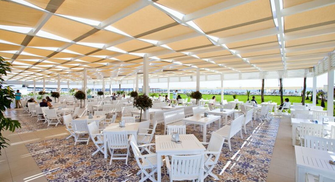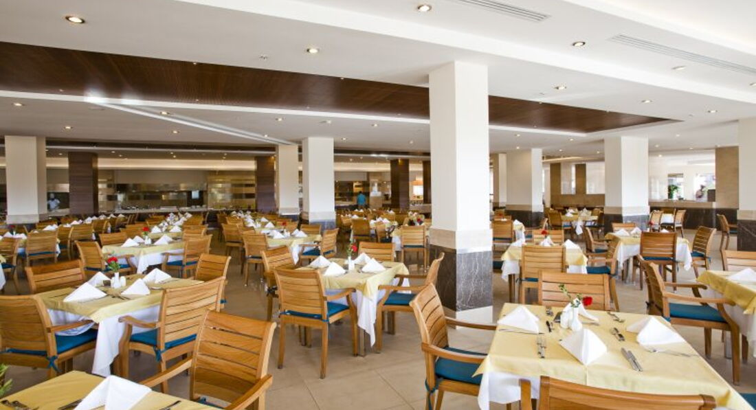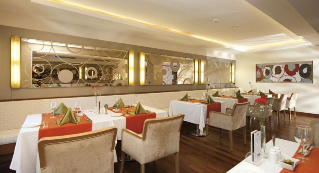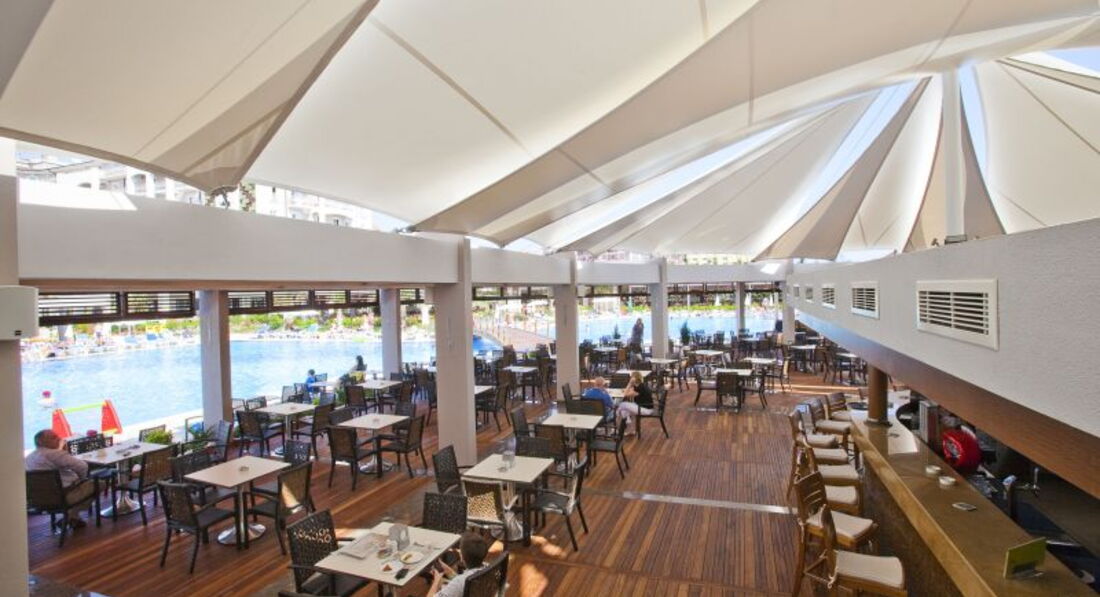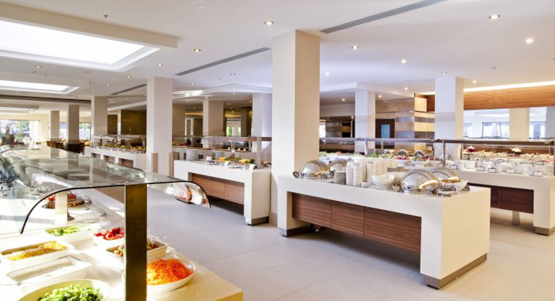 Бари та ресторани: Сніданок: з 07:00-10:00, пізній сніданок: з 10:00-11:00, обід: з 12:30-14:00, вечеря: з 19:00-21:30, пізній вечеря (фіксоване меню): з 23:00-00:00. Шведський стіл. Ресторан розрахований на 705 місць на терасі та 380 місць усередині ресторану. Дитяче меню (шведський стіл): на обід та вечерю. Італійський ресторан. Турецький ресторан. Рибний ресторан. Китайський ресторан. Годинник роботи: з 19:00-21:00. Потрібна попередня резервація. 1 відвідування одного з ресторанів за весь період відпочинку безкоштовно. Ресторани працюють 6 днів на тиждень, залежно від кліматичних умов. Лобі-бар 1. Лобі-бар 2. Villa Bar. Дискобар. Vitamin Bar. Бар на пляжі: легкі закуски з 12:30 до 15:30 (фіксоване меню). Бар біля басейну: легкі закуски з 12:30 до 15:30 (фіксоване меню). Patisserie: час чаю з 11:00-17:00 (фіксоване меню).