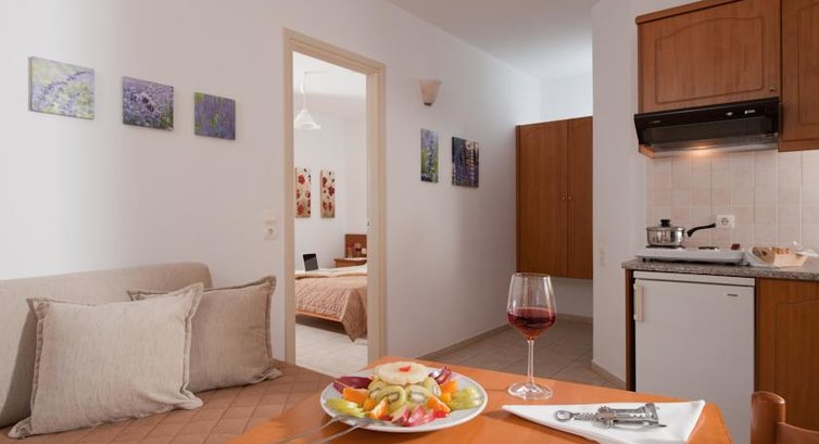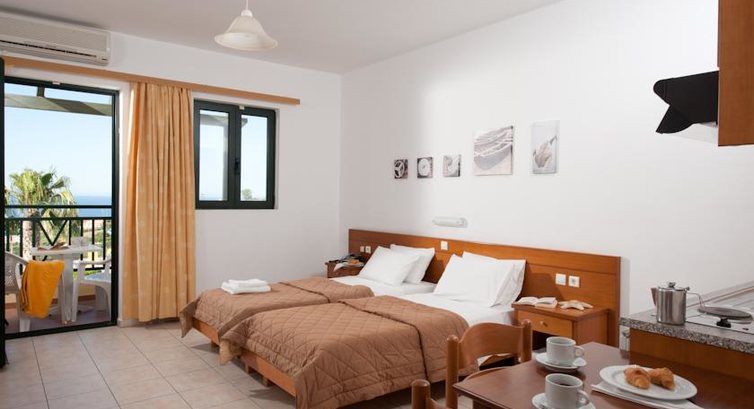 Готель з видом на затоку. Просторі номери обладнані кухнею. На території є дров'яна піч і невелика церква, що, безсумнівно, додасть грецького колориту у відпочинок. Навпроти готелю мінімаркет із усім необхідним. До центру Херсонісосу з його магазинами, барами та ресторанами приблизно 1,5 км. Звертаємо увагу: готель розташований на піднесенні – є спуски та підйоми, а також сходи. Рекомендуємо для спокійного сімейного відпочинку далеко від міської метушні, а також для тих, хто любить подорожувати самостійно.