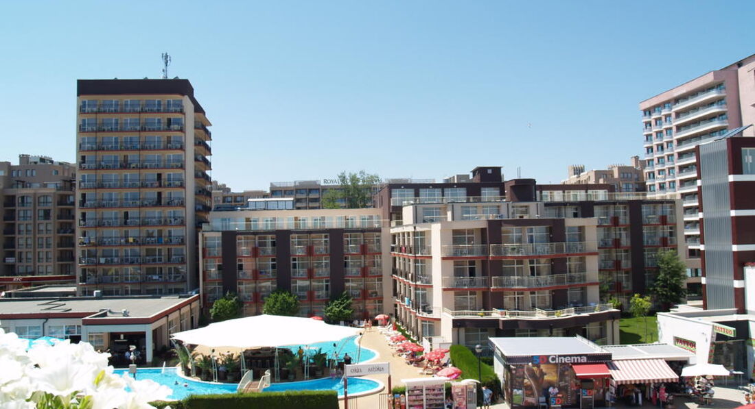 Засели в отель оперативно с отработанной милой улыбкой. Правда мне немножко пришлось улыбаться девушкам на решепшен т.к. при общении с супругой, к сожалению, никак не получался достойный и желаемый номер.. К слову сказать (исключительно субъективно и может касаться только меня) в последующем в Болгарии, при необходимости покупок , оплаты экскурсии, торговые павильоны где продавец женщина, рассчитываться приходилось мне, решение было семейным. Тогда в большинстве случаев "рождается" какая то альтернатива и варианты...))). Вид из номера на легендарный отель 5* Royl изюминку и бриллиант побережья Солнечный берег. До территории пляжа от отеля около 6 метров... Да, я не ошибся именно так, стоит перейти небольшую асфальтированную дорожку и пляж. Это очень большой плюс. Несколько слов сразу о пляже и море... коль уже коснулись... Лежаки так называемые отельные есть... Но их мало, более того (как пишут другие отдыхающие в отзывах ) их малое количество еще и на два отеля. Так как фактически Астория со своей вроде как 4-ой родниться с Орел-иком 2-ка ))) И отдыхающие двух отелей соответственно пользуются всей инфраструктурой. Поэтому желающие загорать и наслаждаться тенечком зонта будут вынуждены принимать морские ванны с первыми лучами солнышка, или просто по нашему "занимать"))) лежак, набросив полотенце с самого утра. Наш менталитет на своем месте. Иногда, придя на пляж к 9 утра можно увидеть 5-6 туристов, но свободных лежаков не будет.))) Кто завтракает, кто-то досыпает и явится позже... А иногда и бывают свободные, но это иногда. В целом с учетом того, что все пляжи муниципальные, то и порядок соответствующий. ПО вечером специальная техника просеивает песок, специальные желтые человечики убирают мусор, чистят урны. Я к тому, что довольно приятно загорать и нежиться в том числе и на теплом морском песочке. Да еще это и полезно. Вход в море, пологость - все допустимо хорошо. Правда при малейшем штормике и после обеда чистота воды желает быть лучшей. Пленка, изделия из пластмассы и масса водорослей и травы. Плюс к данному удовольствию примыкают обаятельные медузы. Не всегда их присутствие есть, но частенько. Все указанное не может омрачить отдых. По крайней мере у нас было так. Во- первых на море, как правило мы проводили время в первой половине дня... Когда всех прелестей указанных выше еще нет. Во вторых после обеда практиковали небольшой отдых в номере , далее ужин и вечерний променад. Гуляли и познавали территорию побережья ежедневно. Несмотря на деток (младшей было 5 лет) ежедневно мы покоряли 5- 6 км побережья, возвращаясь в отель ближе к полуночи..))) У нас очень подвижная семья.