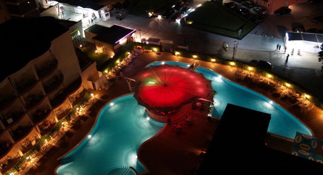 7. бассейн - нормальный. но посередине бассейна платный бар, в котором вечером и ночью под очень громкую музыку танцуют девушки почти стриптиз, зазывая публику с набережной.