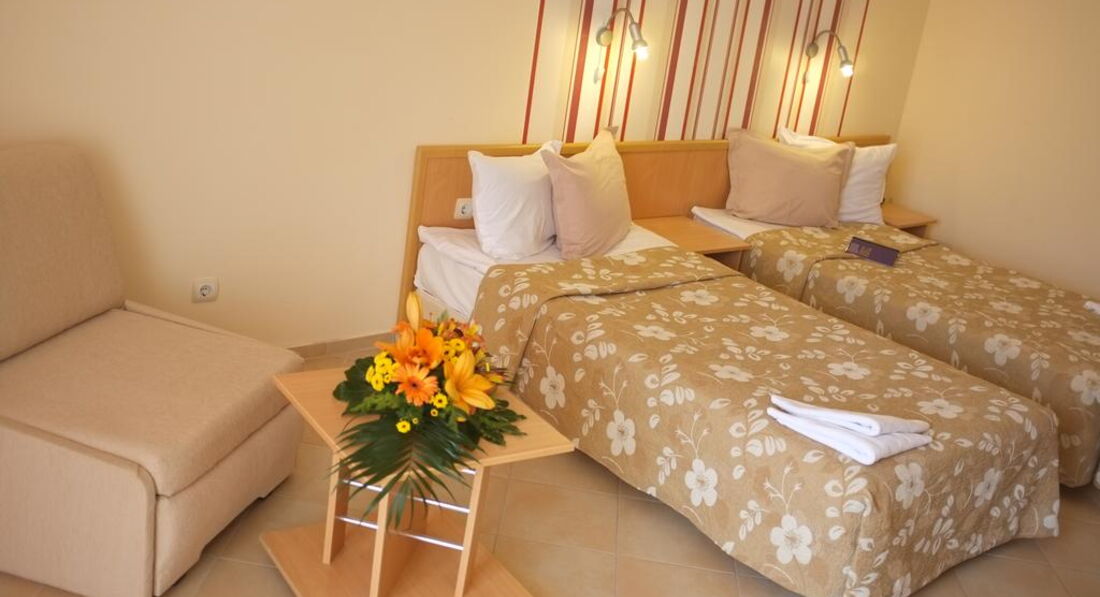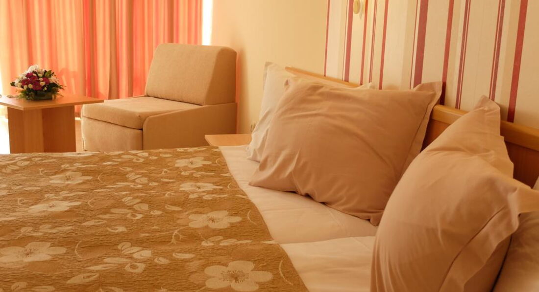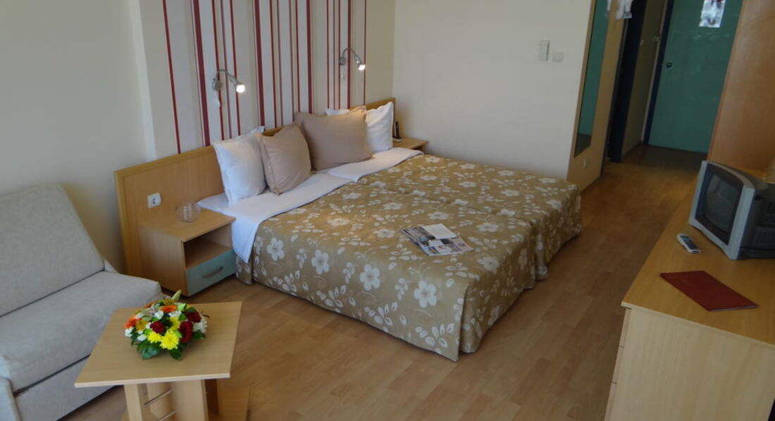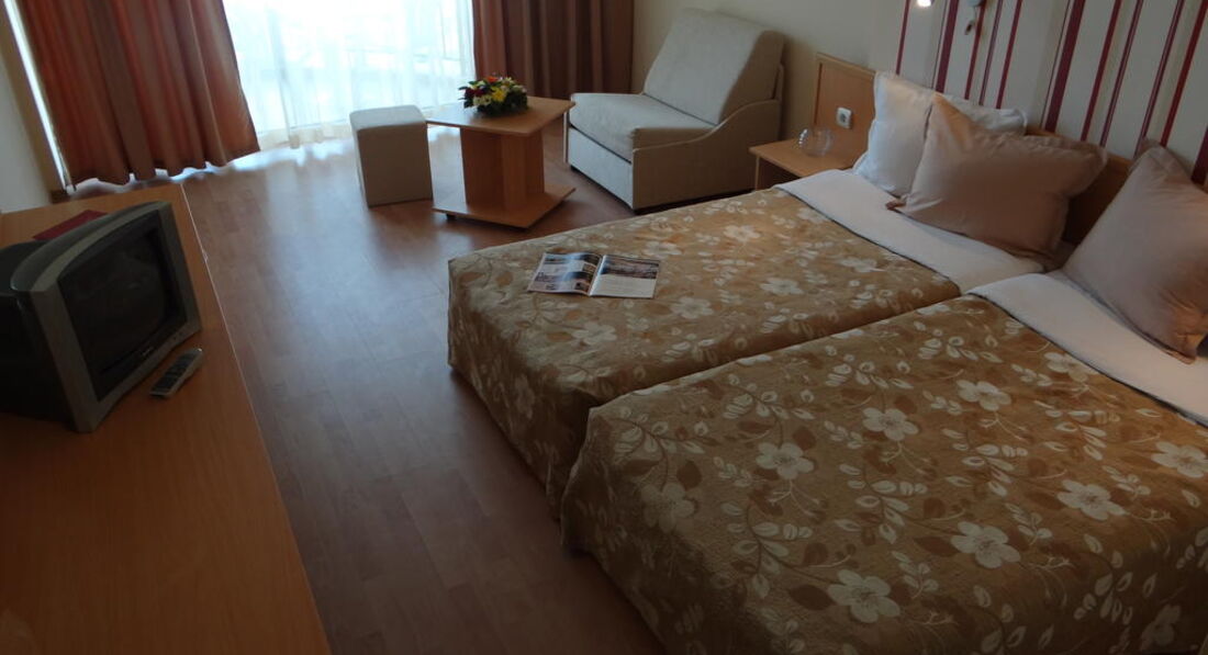 Отель плохенький, никому не советую. Кругом такая красота, выбирай любой отель, но мы, к сожалению, решили съэкономить, о чем очень пожалели. Номер нам достался на 1-ом этаже с видом на шикарный отель (за ним море). В номере кондиционер работал кое-как, полотенца менялись 1 раз в 2 недели, пастельное белье также. Полы мылись ужасно, на полу оставался весь песок (что мыли, что не мыли). Питание плохое- одно и тоже каждый день (яица, сосиски, колбаса, салаты, макароны). Но несмотря на это сама Болгария - это Чудо. Остались очень приятные воспоминания. Всем советую посетить эту великолепную и удивительную страну с ее радушным населением. Сама обязательно поеду еще, но уже на выборе отеля экономить не буду.